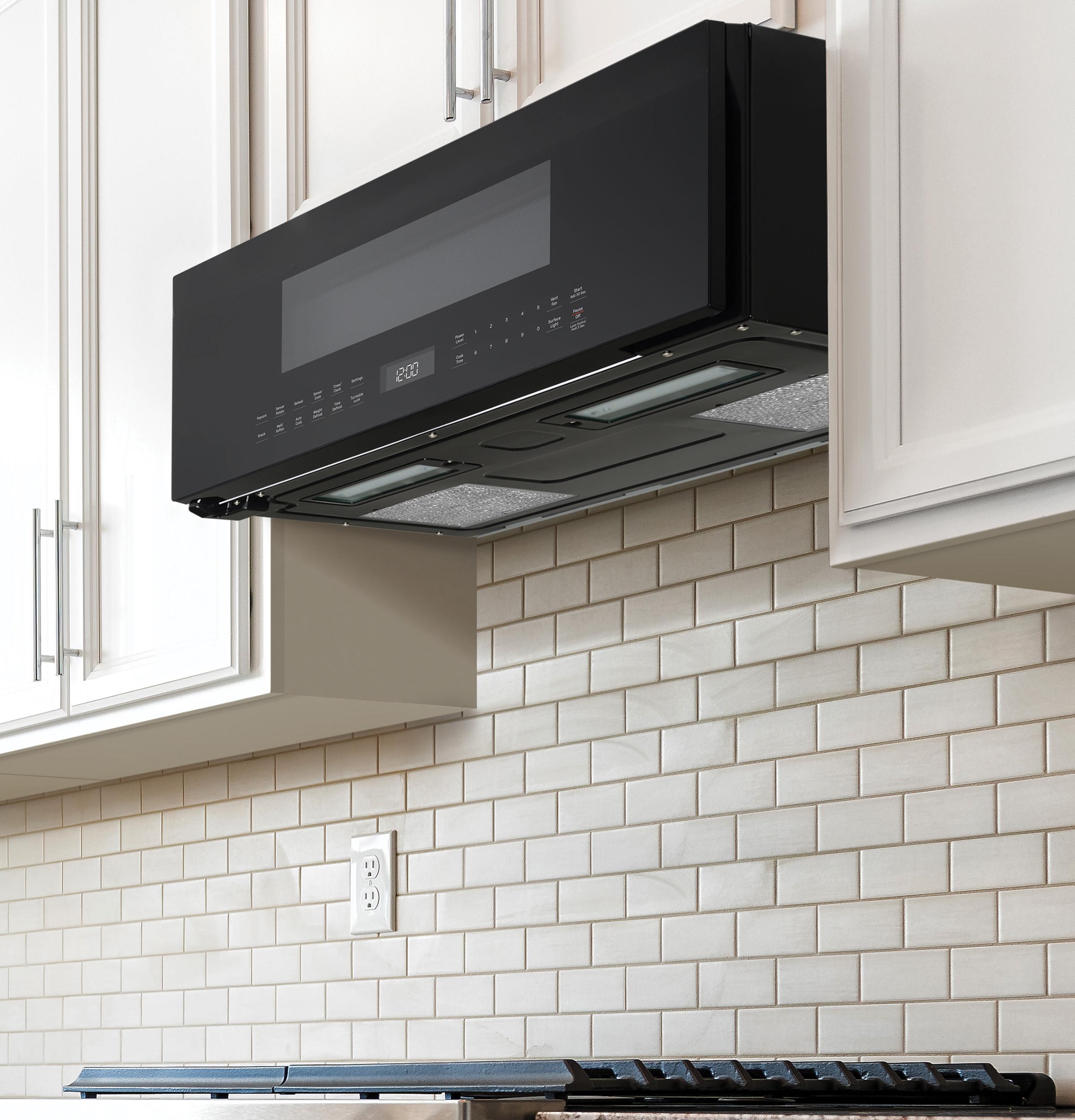 This low profile microwave fits over the range in the same space as a regular undercabinet hood, leaving plenty of countertop space