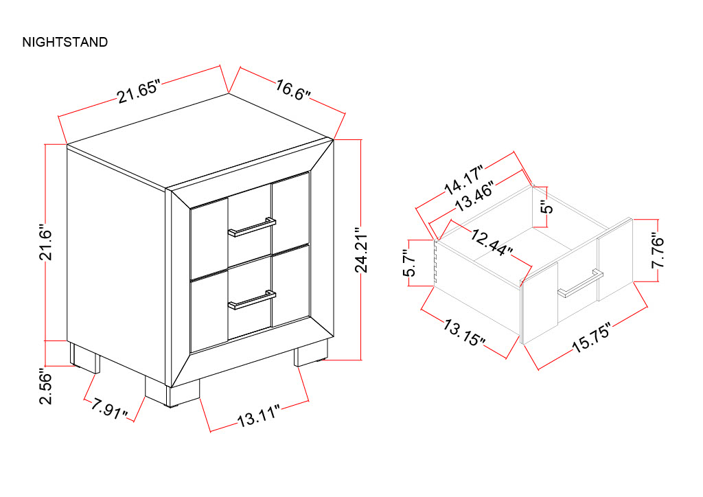 The offers convenient bedside storage with a sophisticated design. Finished in the collection’s signature two-tone walnut and dark brown, it features smooth gold handles that add a touch of elegance. Compact yet functional, this nightstand blends practicality with high-end style.