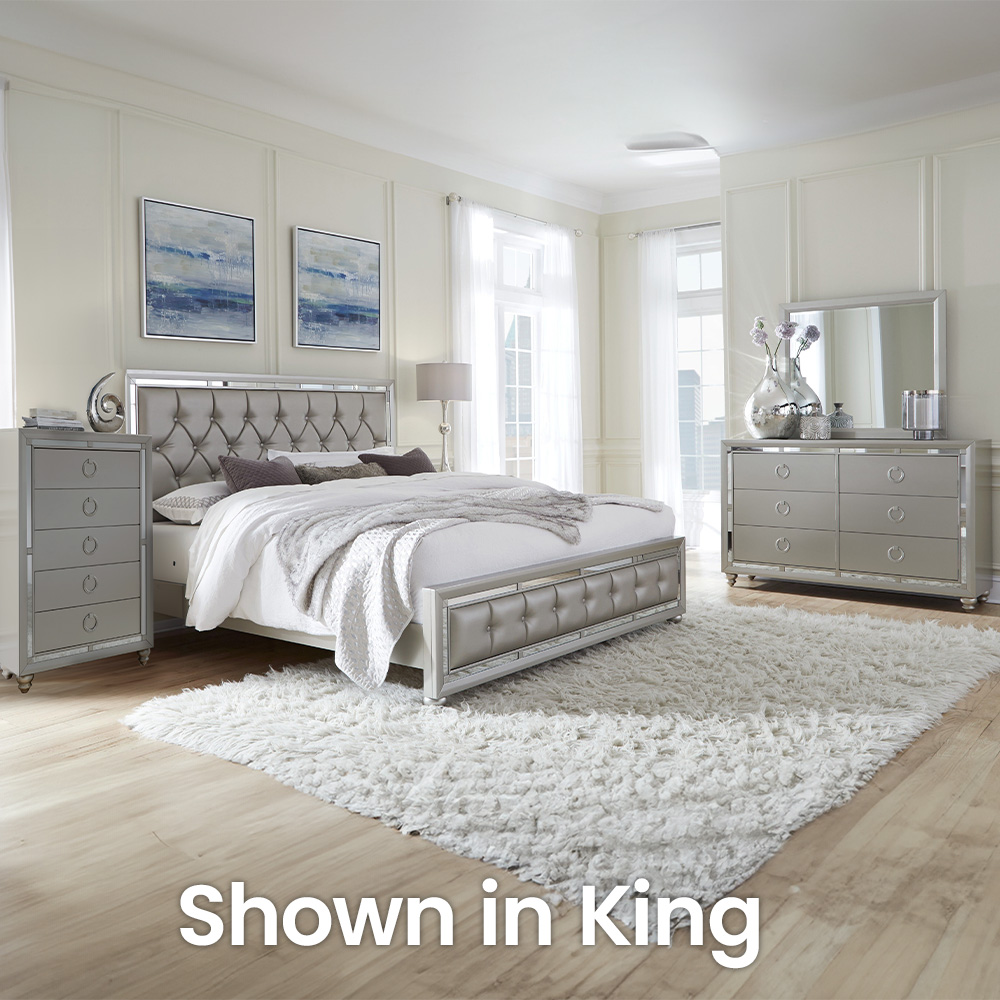 Riley King 6 Piece Bedroom Package – Silver Finish