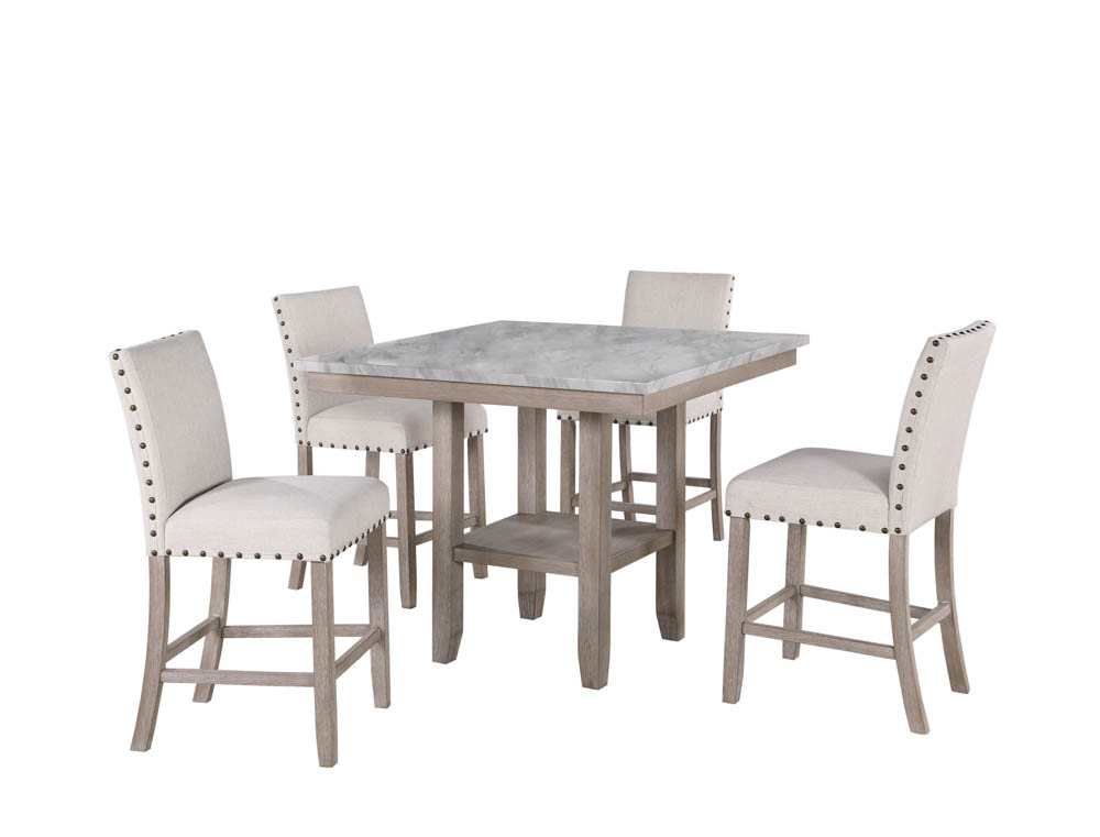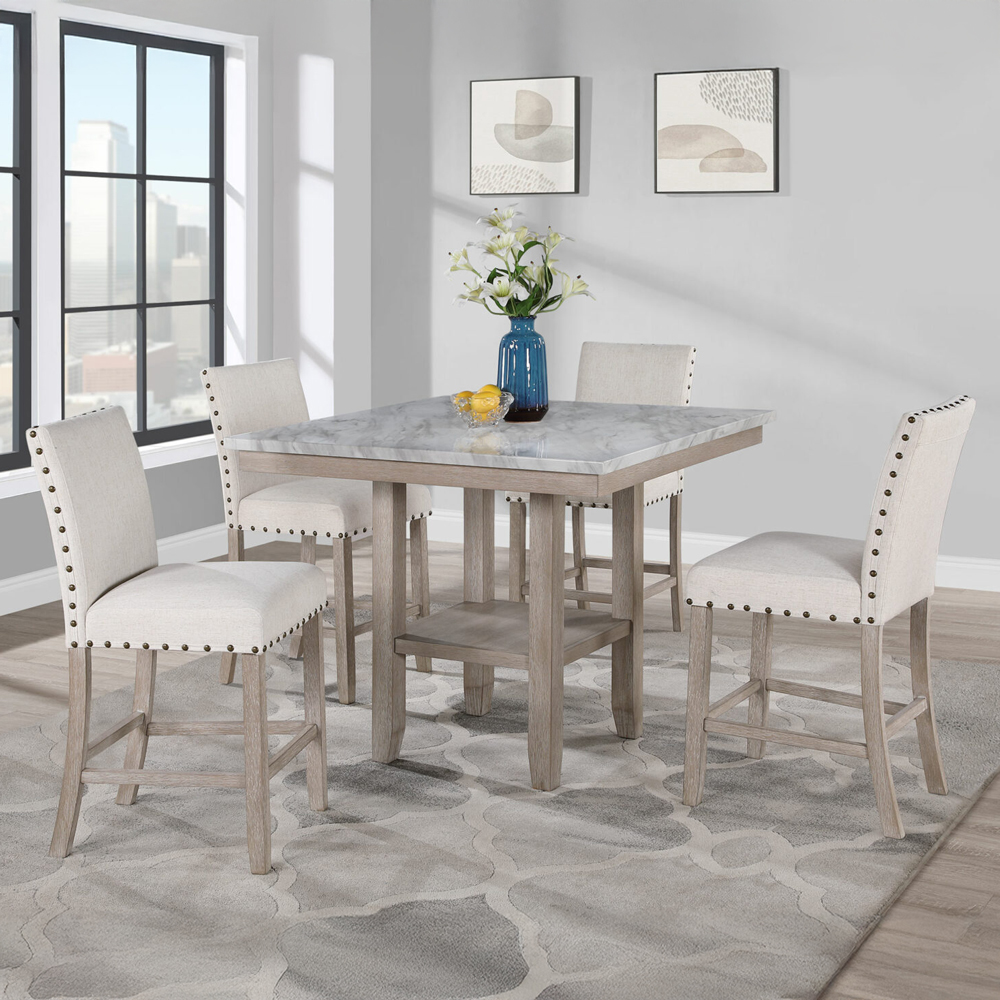 Serena 5-Piece Pub Table Set With Faux Marble Top