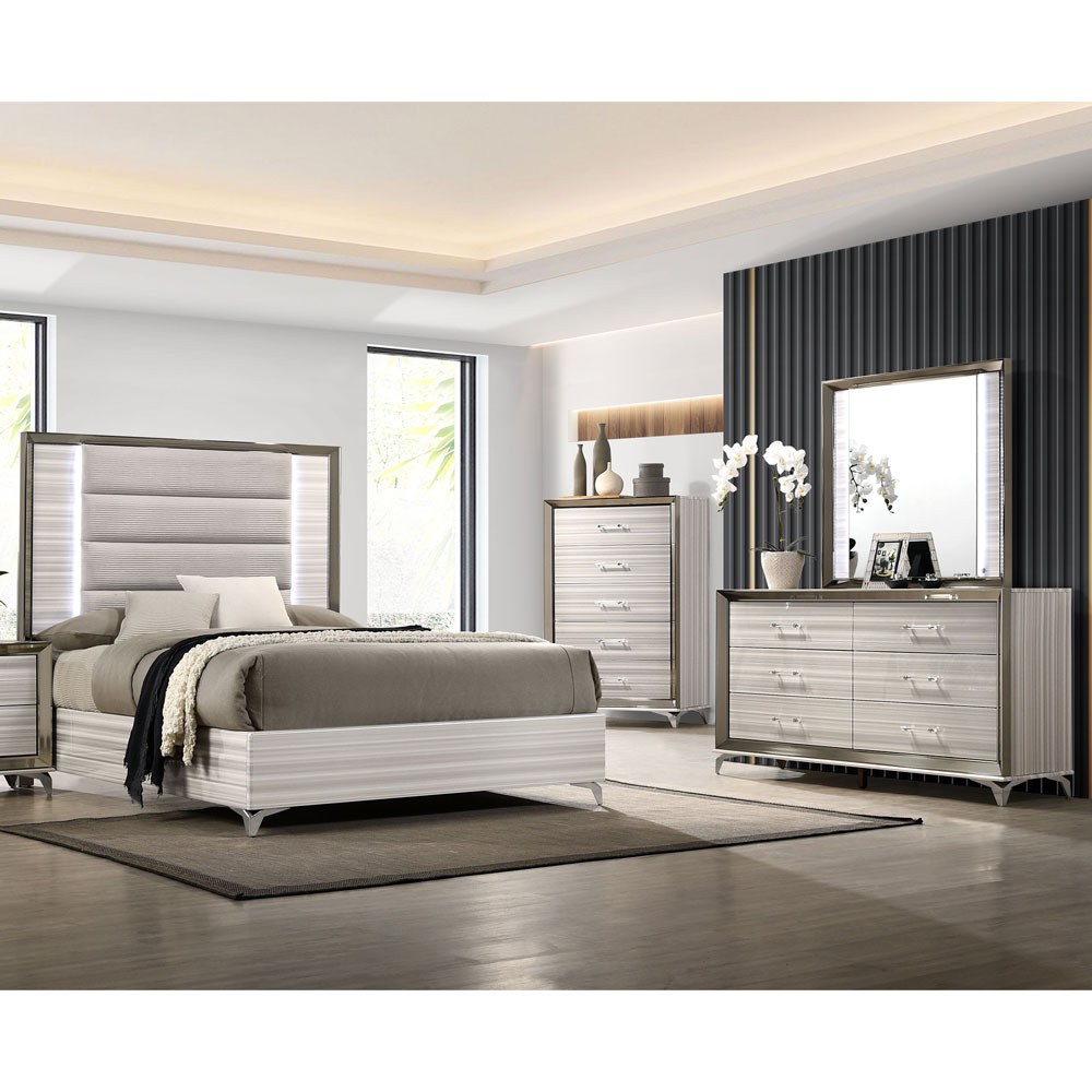 Zambrano Queen 6 Piece Bedroom with LED Upholstered Headbord