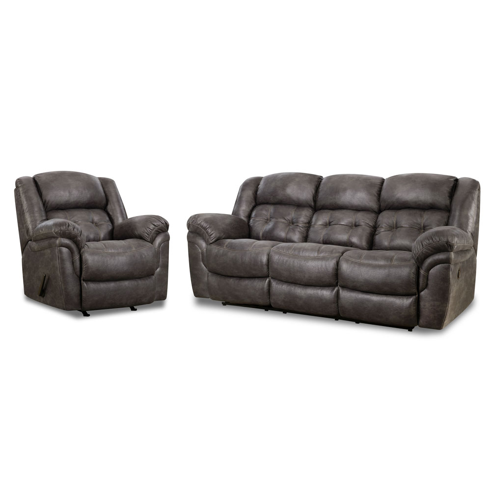 Frontier Reclining Sofa and Rocker Recliner with Charcoal Fabric Cover