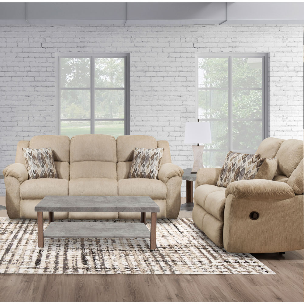 Newport Reclining Sofa & Loveseat with Fawn Fabric Cover