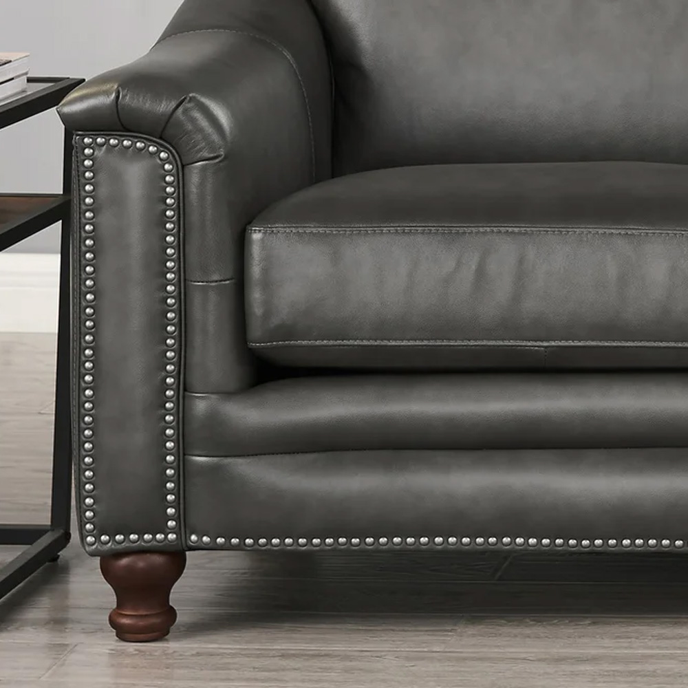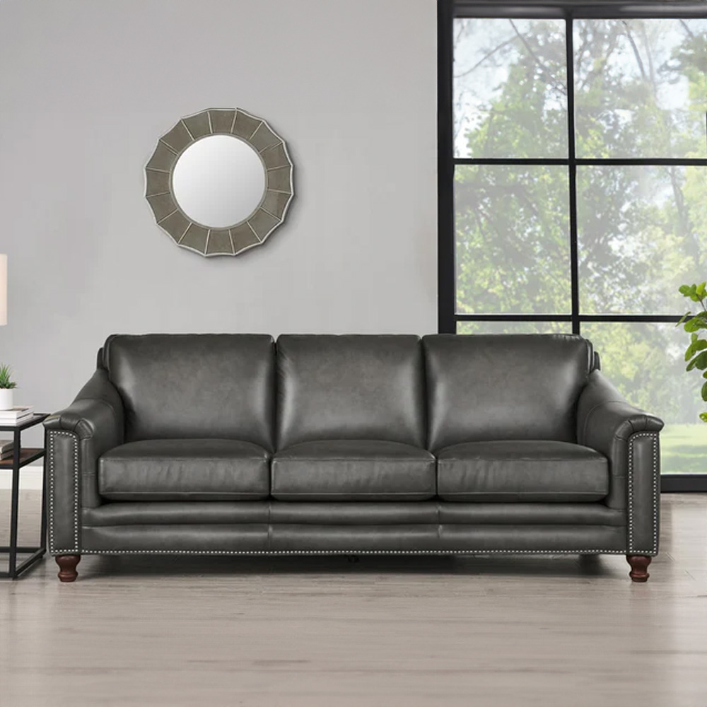 Arvo Leather Stationary Sofa with Spa blue top grain leather