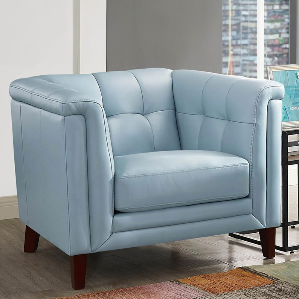 Arvo Leather Stationary Chair – Spa Blue Top Grain Leather