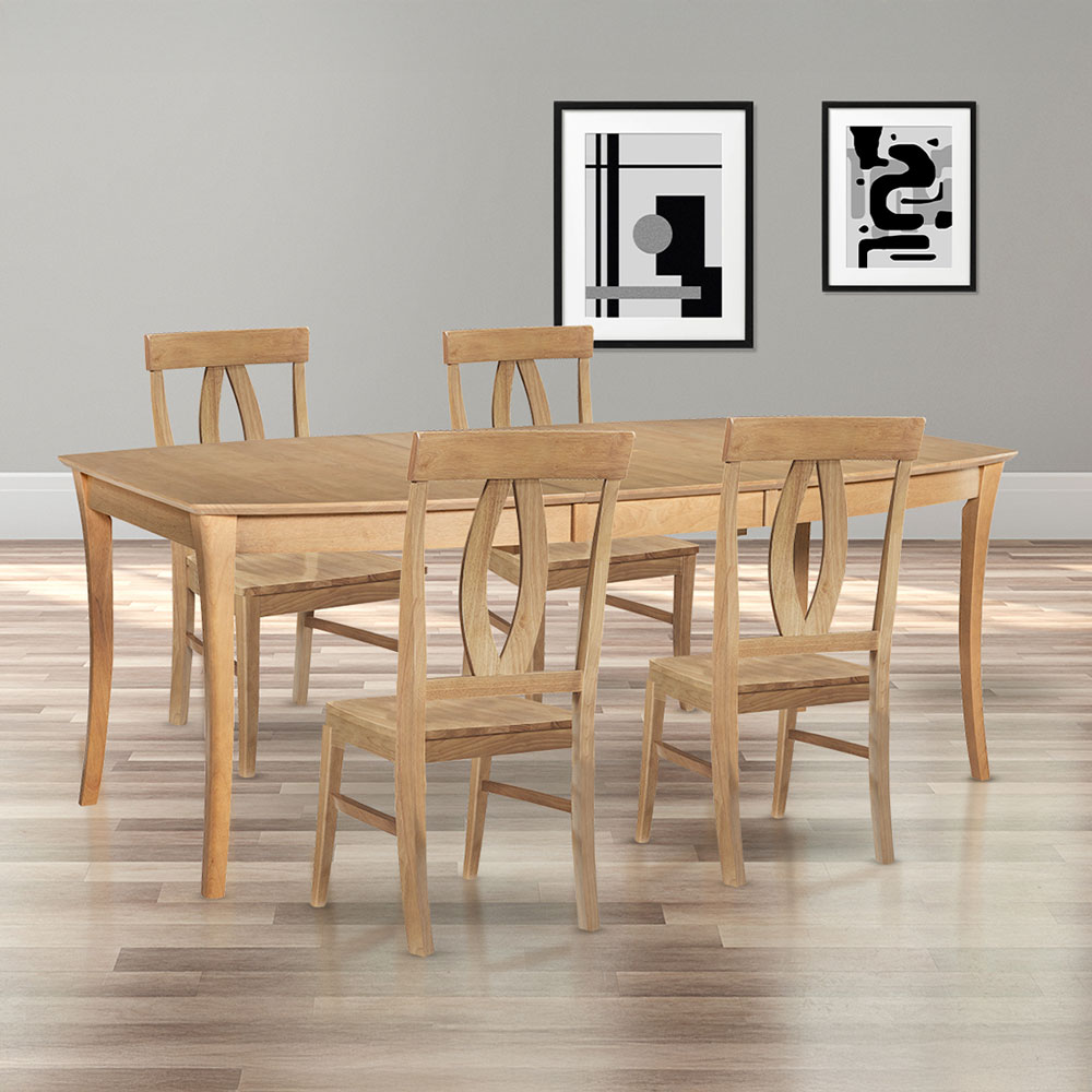 The Verona 5-Piece Dining Set in a warm honey finish brings classic dining style with everyday flexibility. Featuring the Verona Butterfly Extension Table and four matching dining chairs, this set easily expands for family meals, guests, and casual gatherings while creating a welcoming dining space.