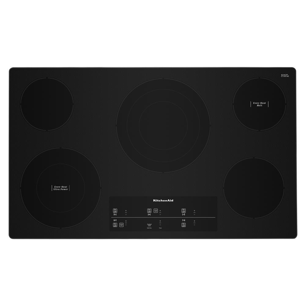 This 36" electric cooktop combines the lasting beauty of a black glass surface with the performance of a 10'' Even-Heat Ultra Power Element with Simmer Setting, two 6'' Even-Heat Elements with Melt Setting, and 12''/9''/6'' Triple-Ring Round Element that maximizes your flexibility with three distinct rings to allow for element selection based on cookware size.