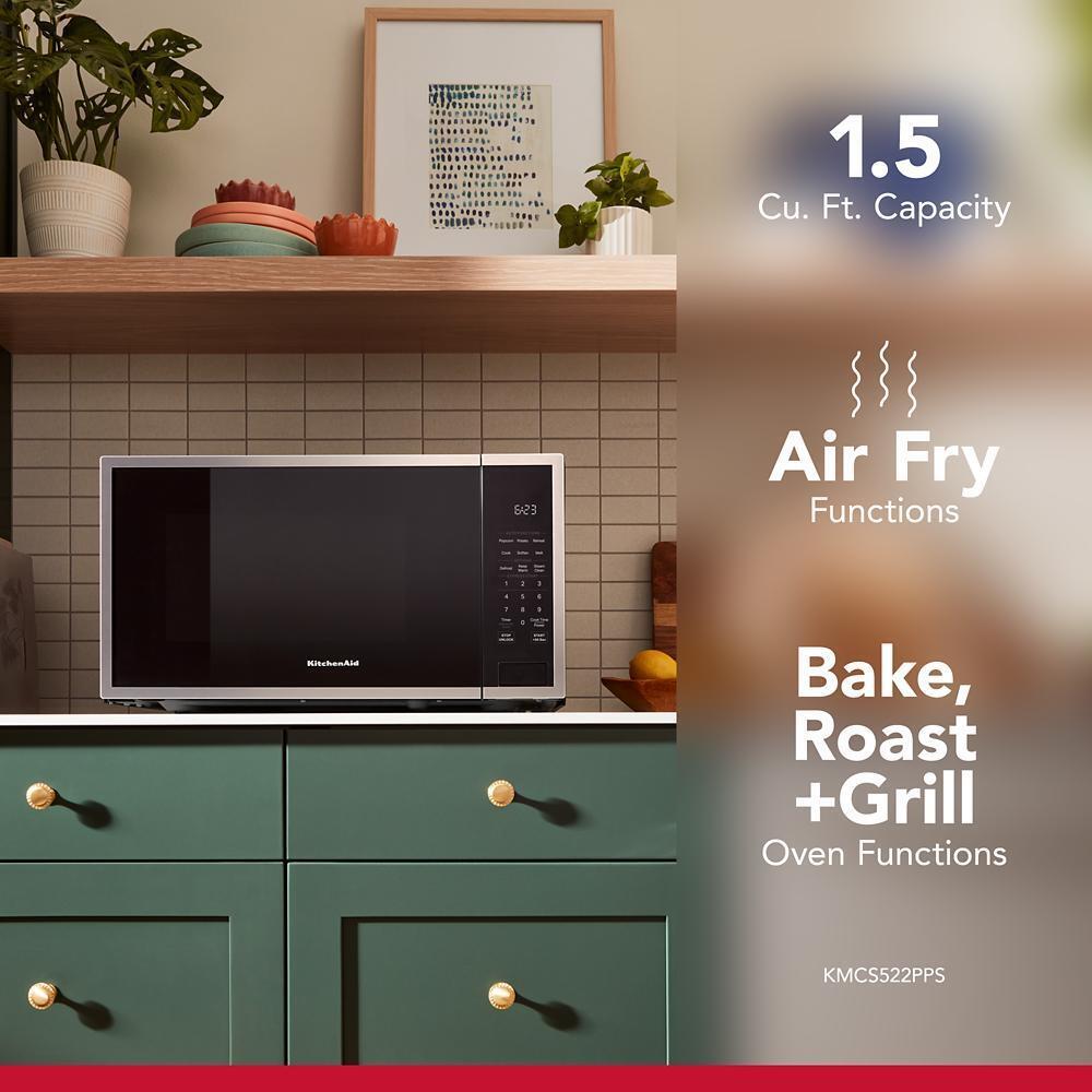 This 1.6 Cu. Ft. KitchenAid Countertop Microwaves takes the guesswork out of choosing settings. Easy-to-use presets are available for popular cooking modes including melt, soften, popcorn, reheat and more. Designed to stand alone on your countertop, this microwave can also be paired with a trim kit for a custom built-in look.