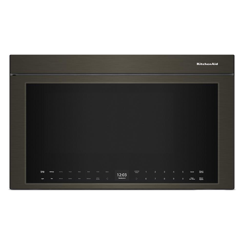 This KitchenAid Multifunction Over-the-Range Oven combines the versatility of an air fryer, toaster oven, convection oven, microwave and ventilation hood, all in one space-saving appliance designed for flush installation within a standard 12 3/4" cutout.