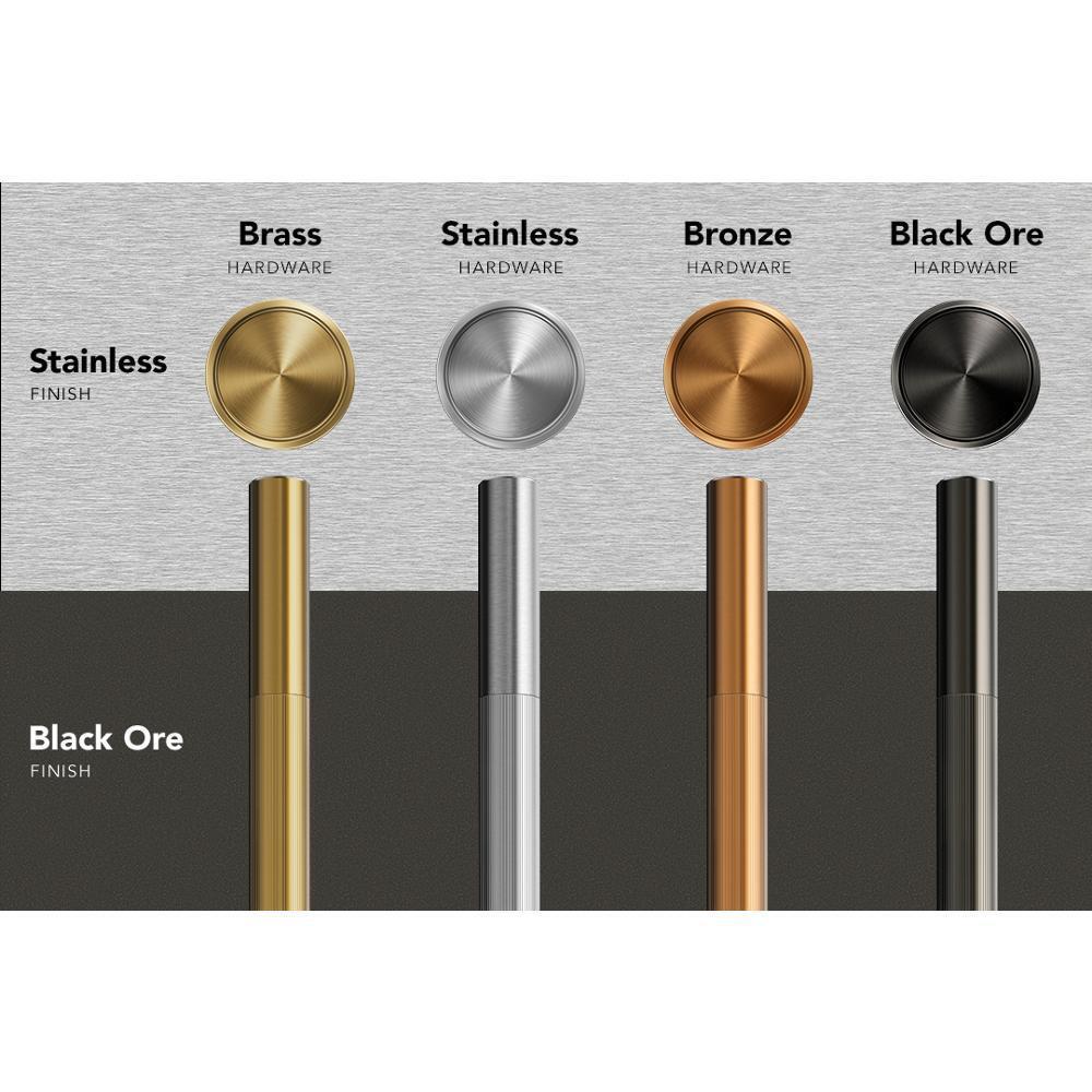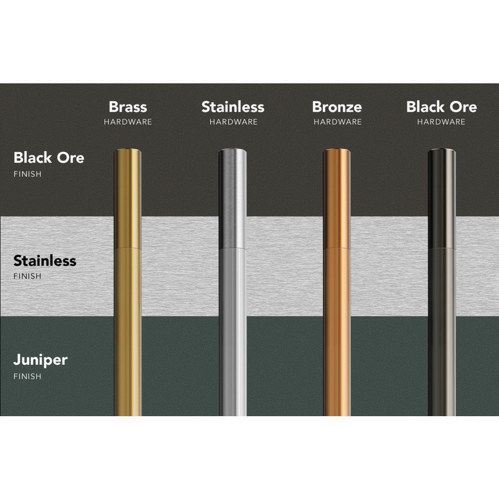 • with a curated palette of exterior finishes and mixed metal hardware. Pick from lush Juniper, warm Black Ore and classic Stainless Steel finishes, all with matching handles. Personalize your hardware with optional handle kits in Brass, Bronze, Black Ore and Stainless Steel.