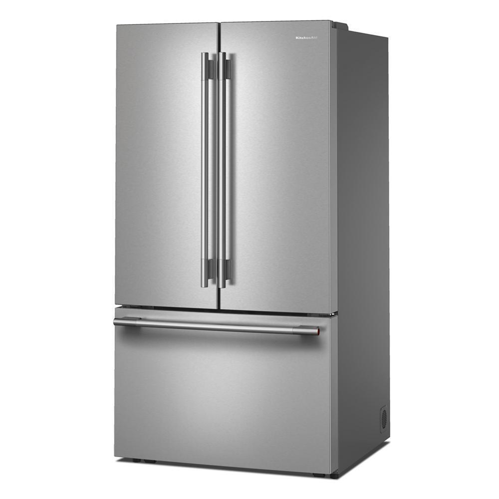 The KitchenAid 31 cu. ft. French Door Refrigerator with Interior Water and Ice gives you the capacity and organization you need to fit everything from your last farmer's market haul-without losing sight of it. It features a Wood-Look Sliding Storage Tray that keeps serving platters at the ready, and Large Capacity Ice Production that delivers ice right when you want it.