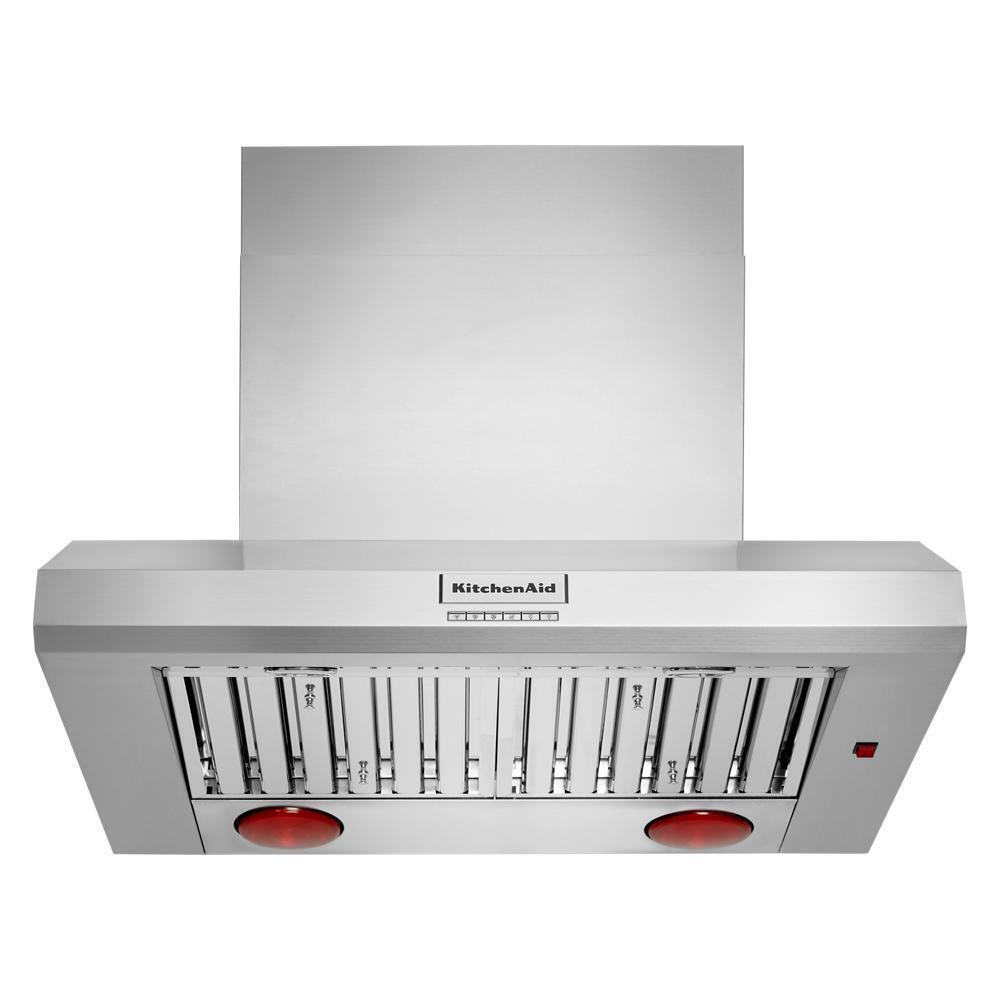 Equip your kitchen with a powerful 36-inch wall-mount canopy range hood designed to pair with 36-inch KitchenAid Commercial-Style Ranges and Rangetops. A 90,000 BTU rating allows this vent hood to keep up with high-heat cooking on multiple burners. Two food warming heat lamps hold cooked items at serving temperature for up to an hour while you finish other dishes.