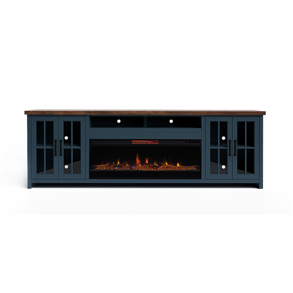 Nantucket 97" TV Stand Blue denim W/ whiskey top