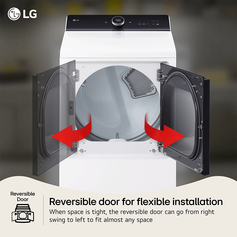 • The dual-opening options of the LG EasyLoad(TM) door make loading and unloading the dryer easier than ever. Transferring wet clothes from the washer? Simply press the release button and pull the door down, hamper style to keep that stray sock from hitting the floor. Removing dry items? Swing the door to the side to clear the way for your basket below. Even tight spaces and challenging laundry-room layouts are no match for versatility like this.