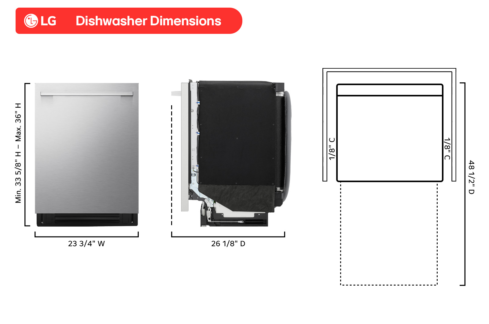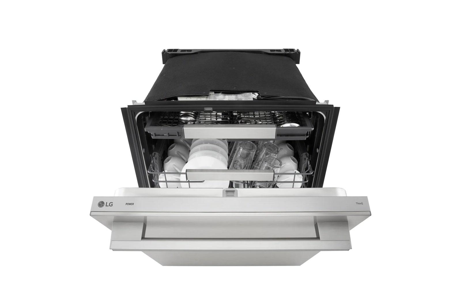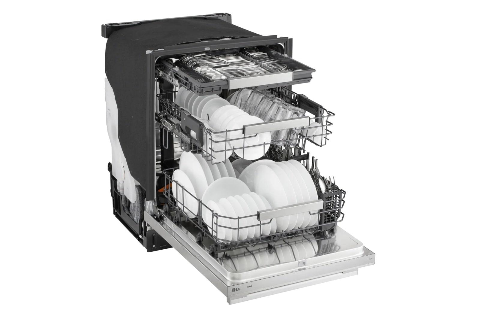 • Flush appliance installation is among the hottest kitchen trends, but rest assured the sleek, integrated design of this LG dishwasher will remain timeless. LG fits your space while fitting an impressive 16 place settings in a single load. It's an instant kitchen upgrade.