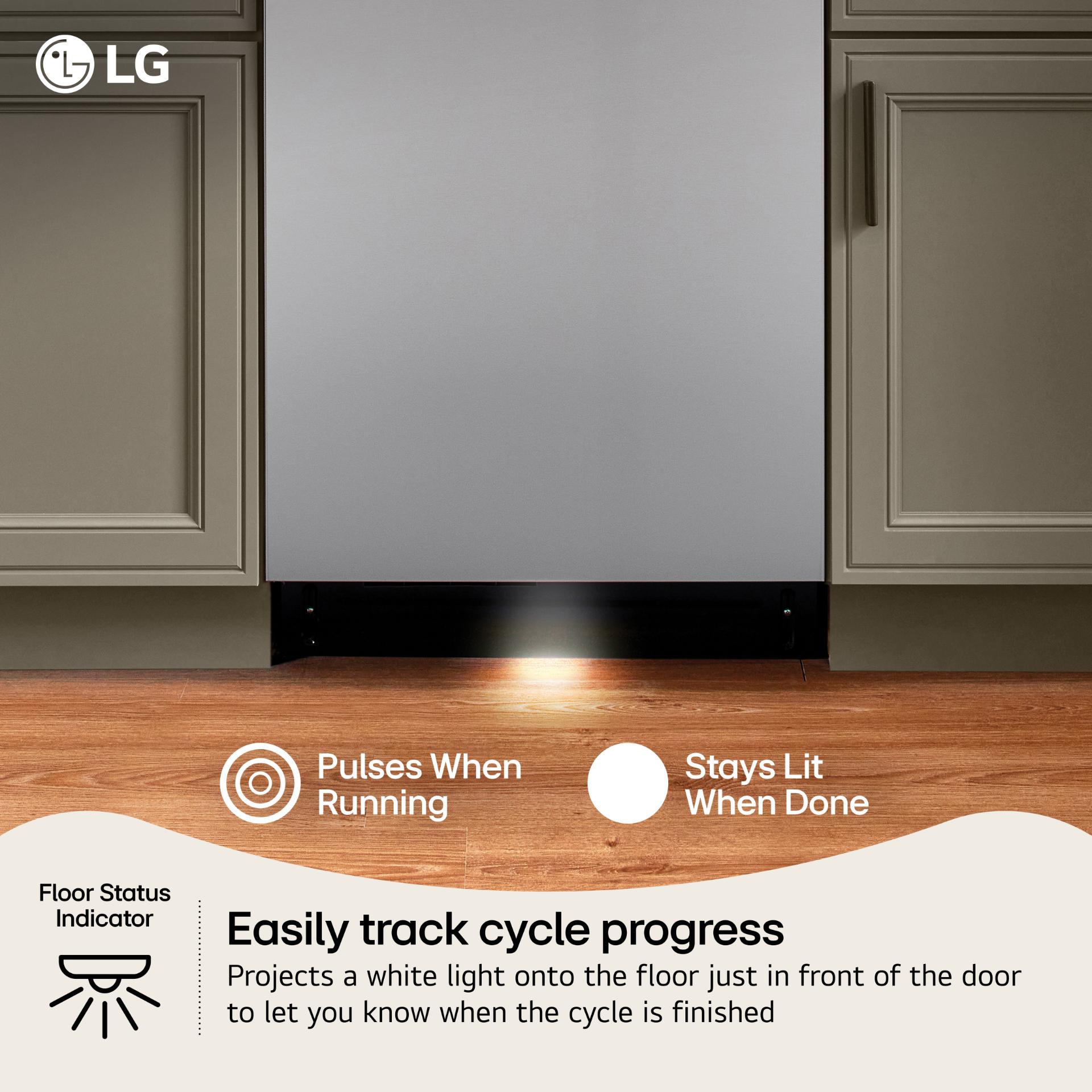 Now there's no more guessing when your dish cycle is complete. Floor status indicator projects a white light onto the floor just in front of the door to let you know when the cycle is finished.r