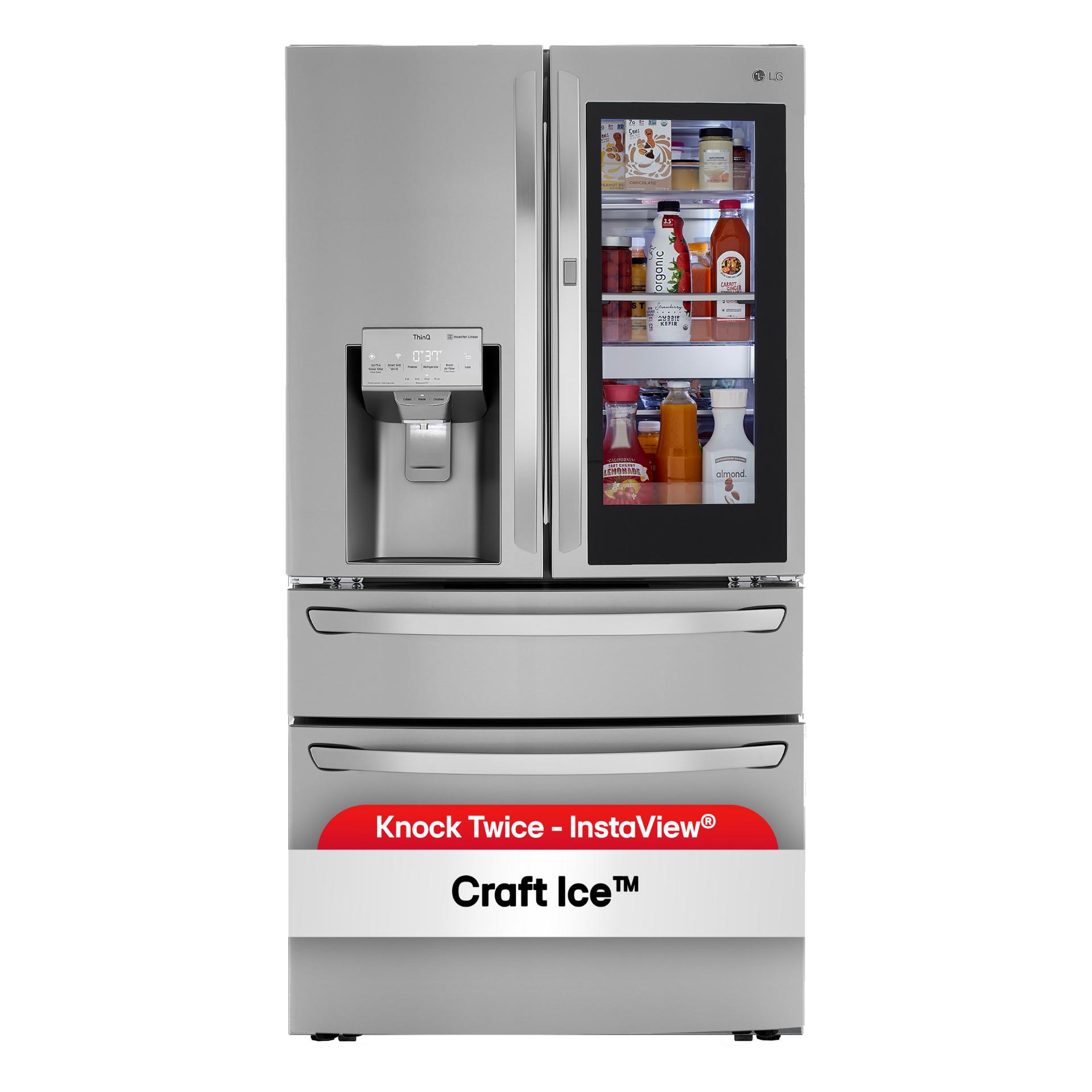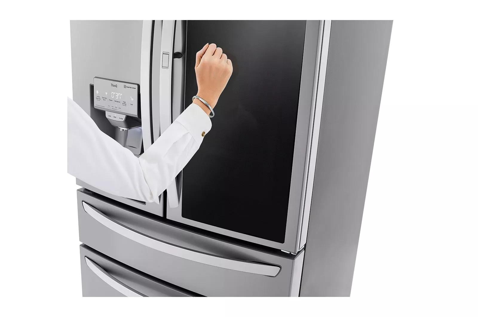Combining innovation and distinctive design, the InstaView Door-in-Door refrigerator will enhance even the most beautifully crafted kitchen. The sleek tinted glass panel illuminates with two quick knocks, so you can see inside the easy access compartment without opening the door, reducing cold air loss to help keep food fresher longer.