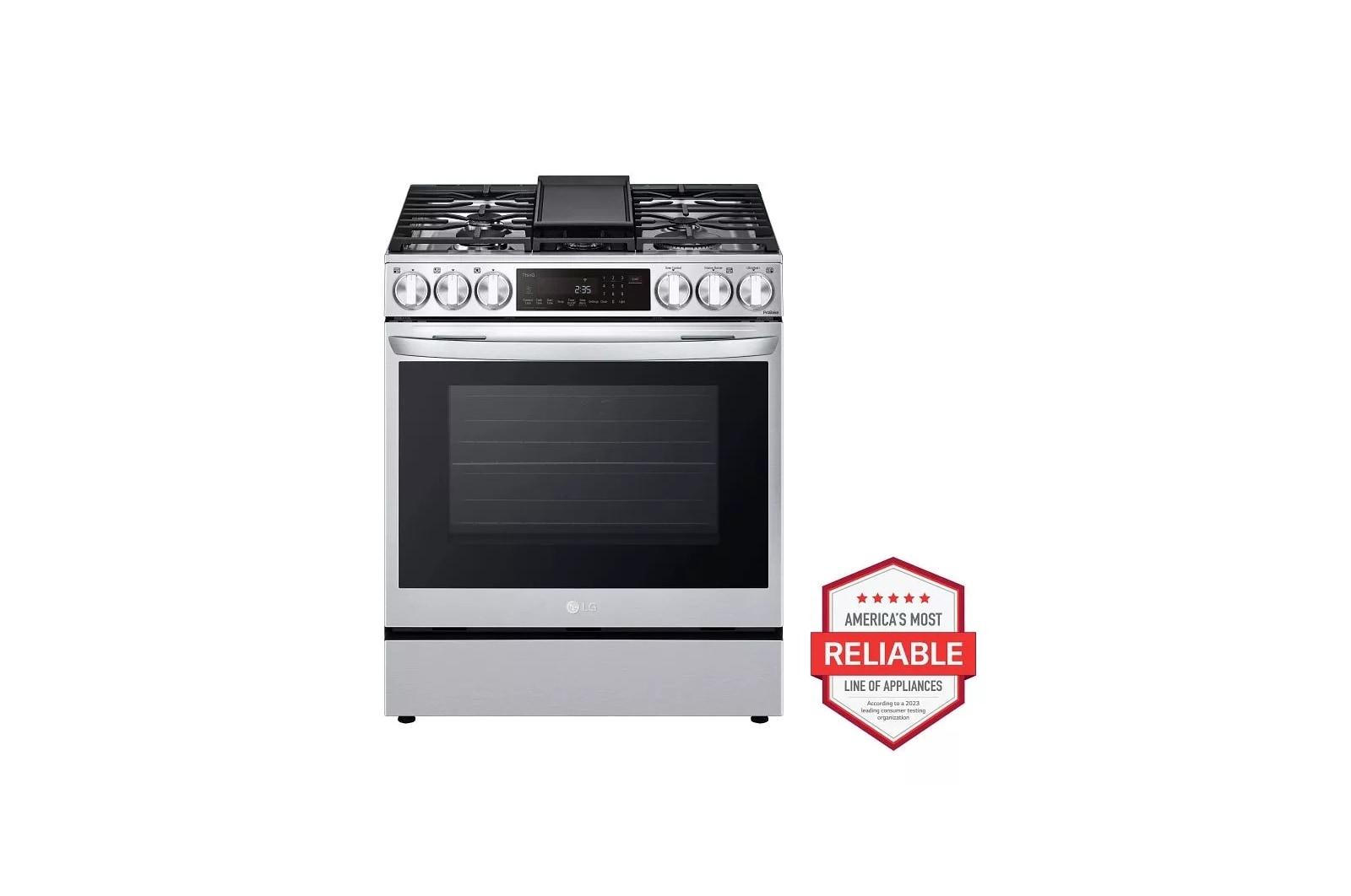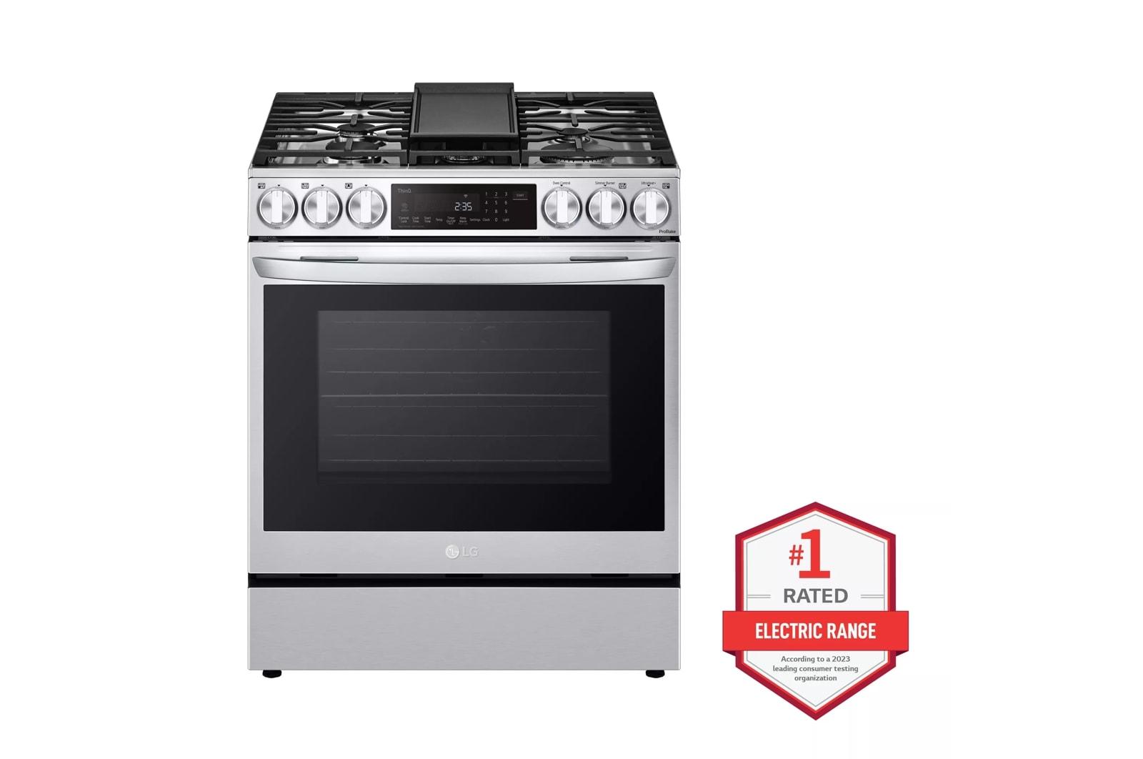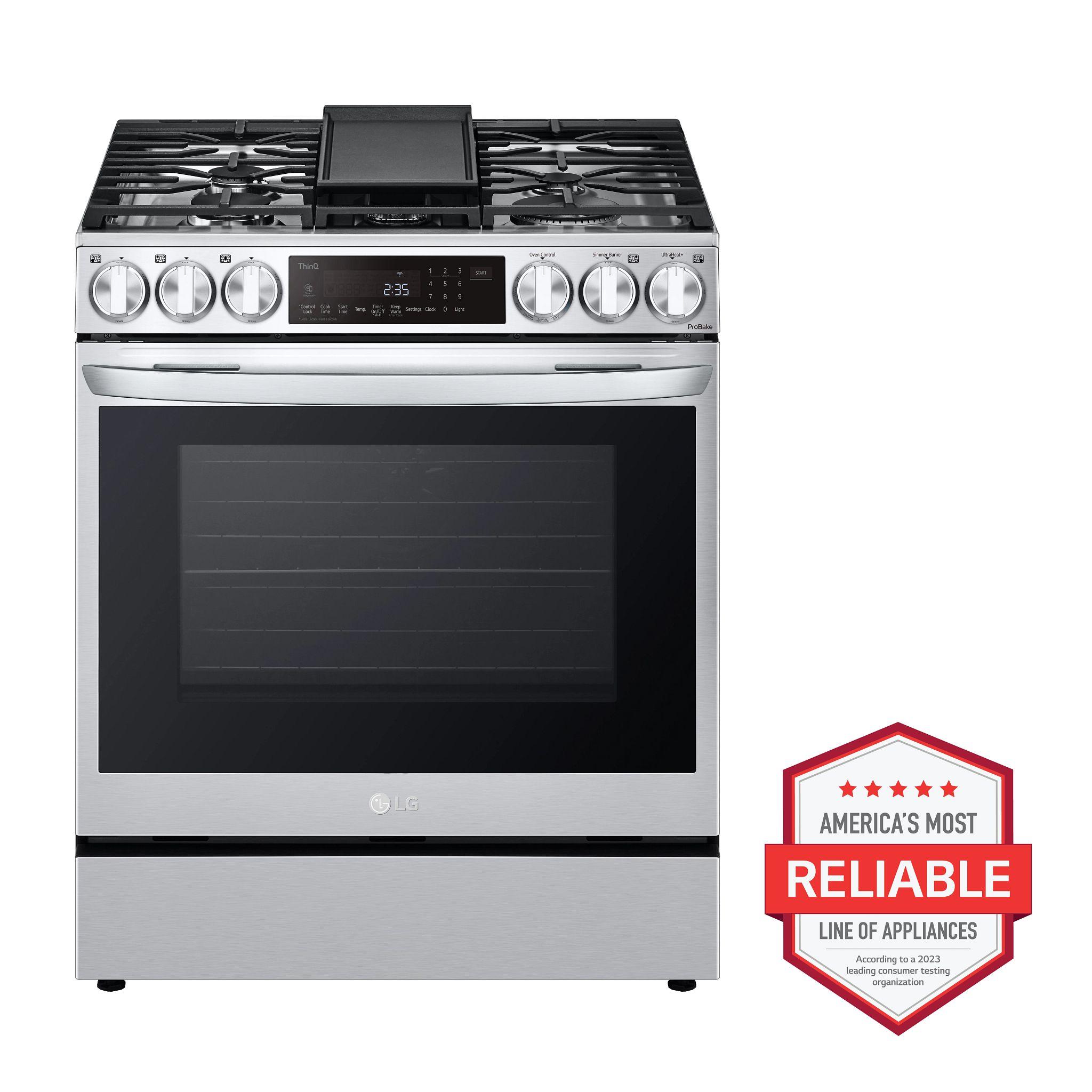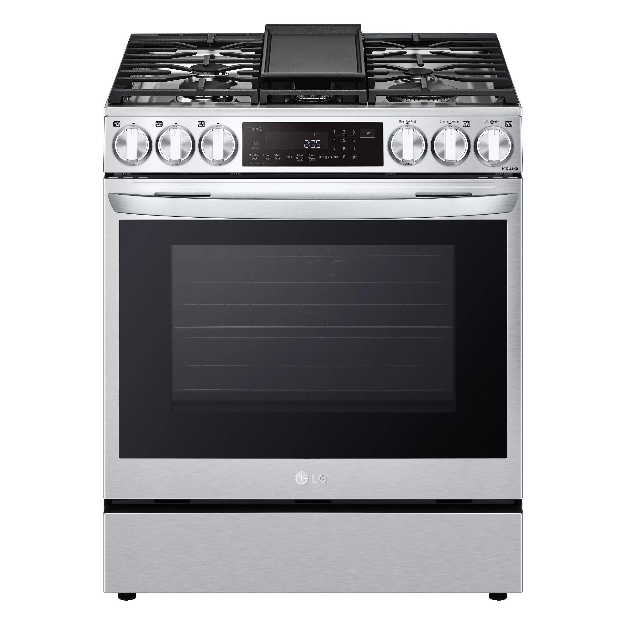 Get Free HOME Delivery! Extra 1 Year Warranty For Free5.8 cu. ft. Gas Single OvenSlide-in Range, EasyClean(R) plus Self Clean, ThinQ(TM), Printproof(TM) StainlessSteel