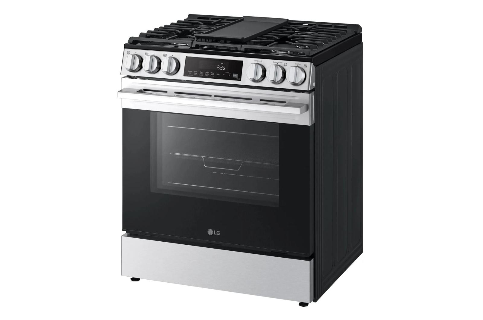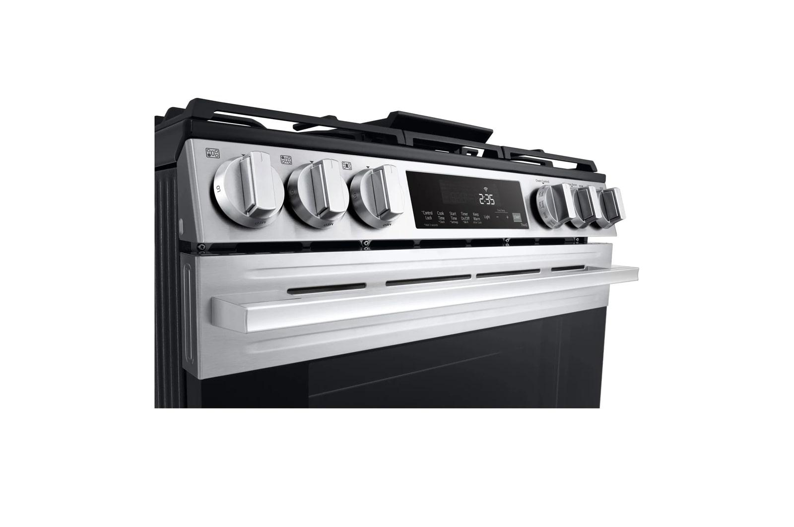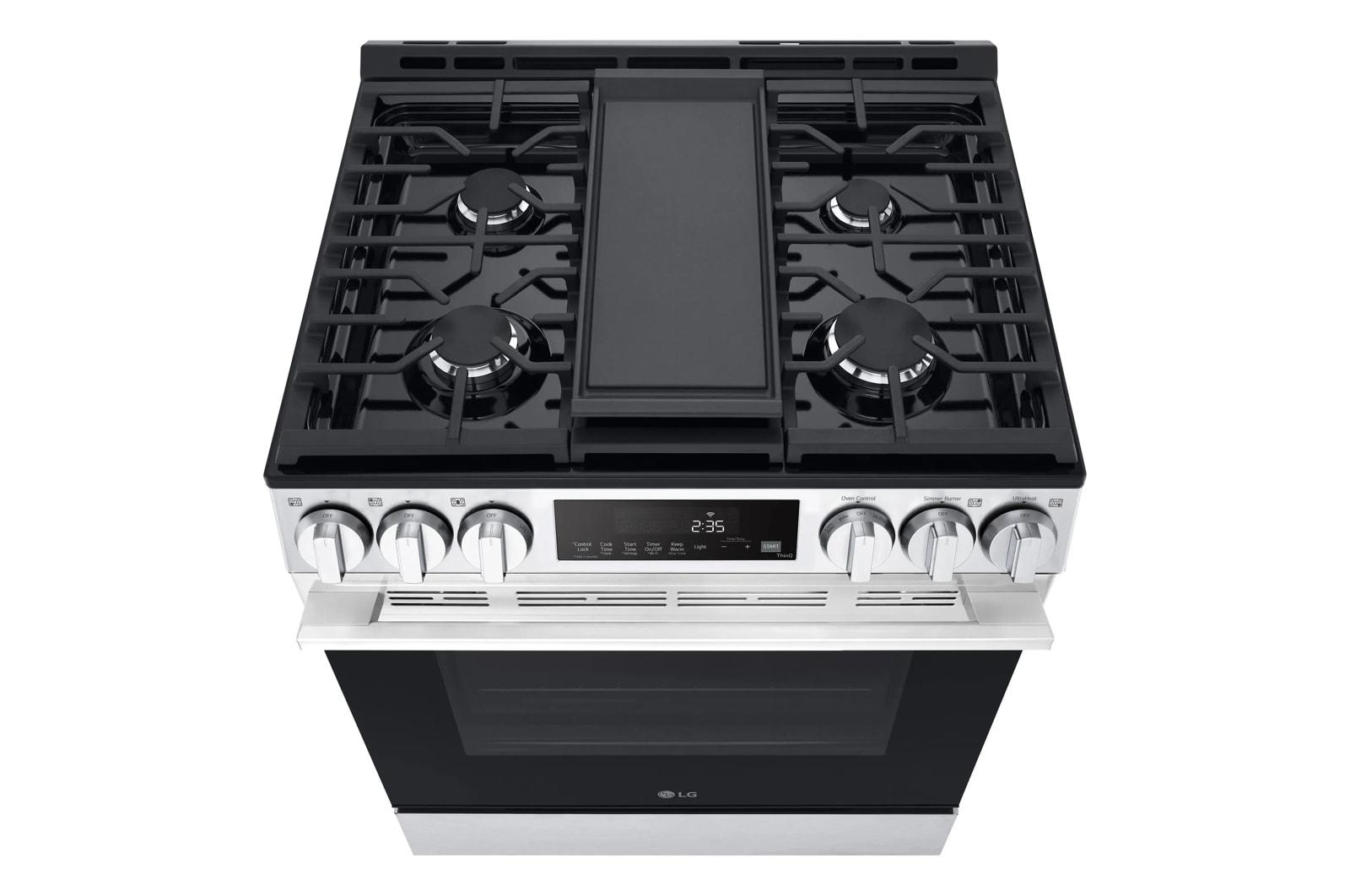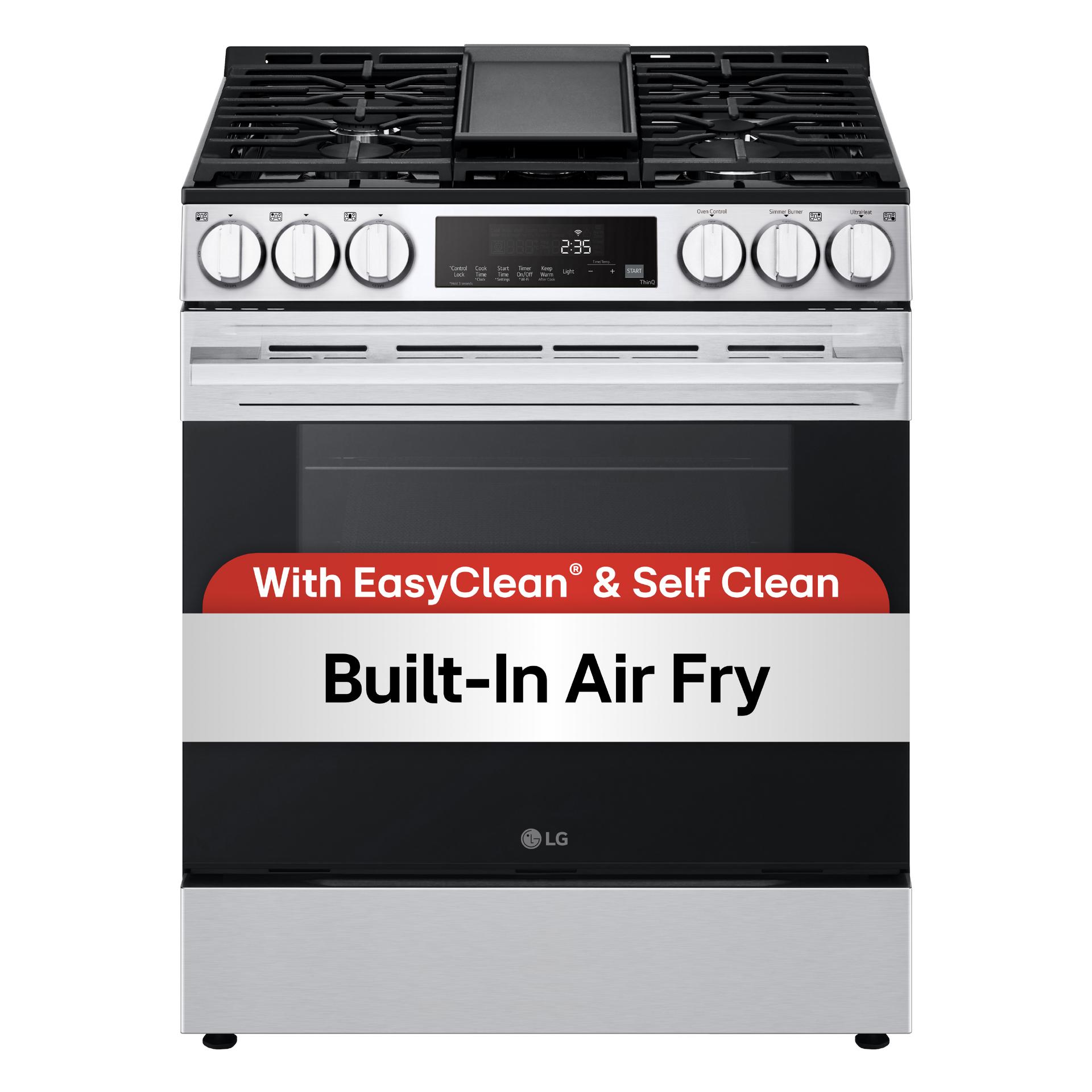 5.8 cu.ft. Smart Gas Single Oven Slide-in Range, Air Fry, Fan Convection, EasyClean(R), Self Clean, ThinQ(R), Printproof(R) Stainless Steel - New Handle