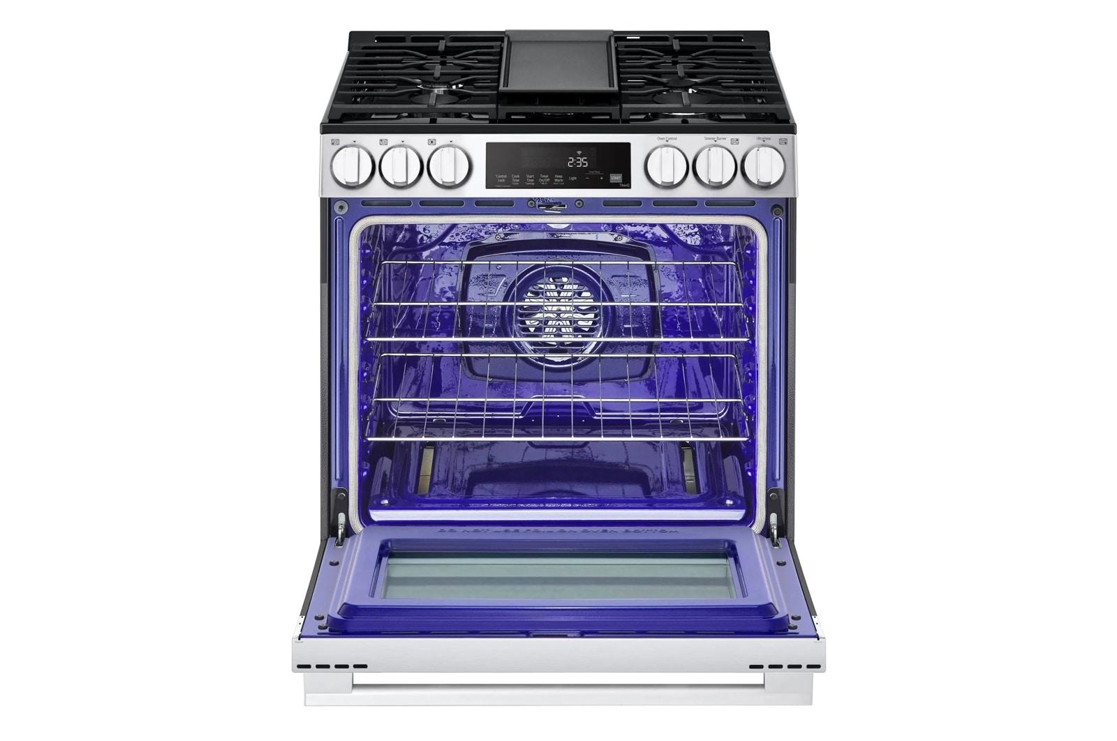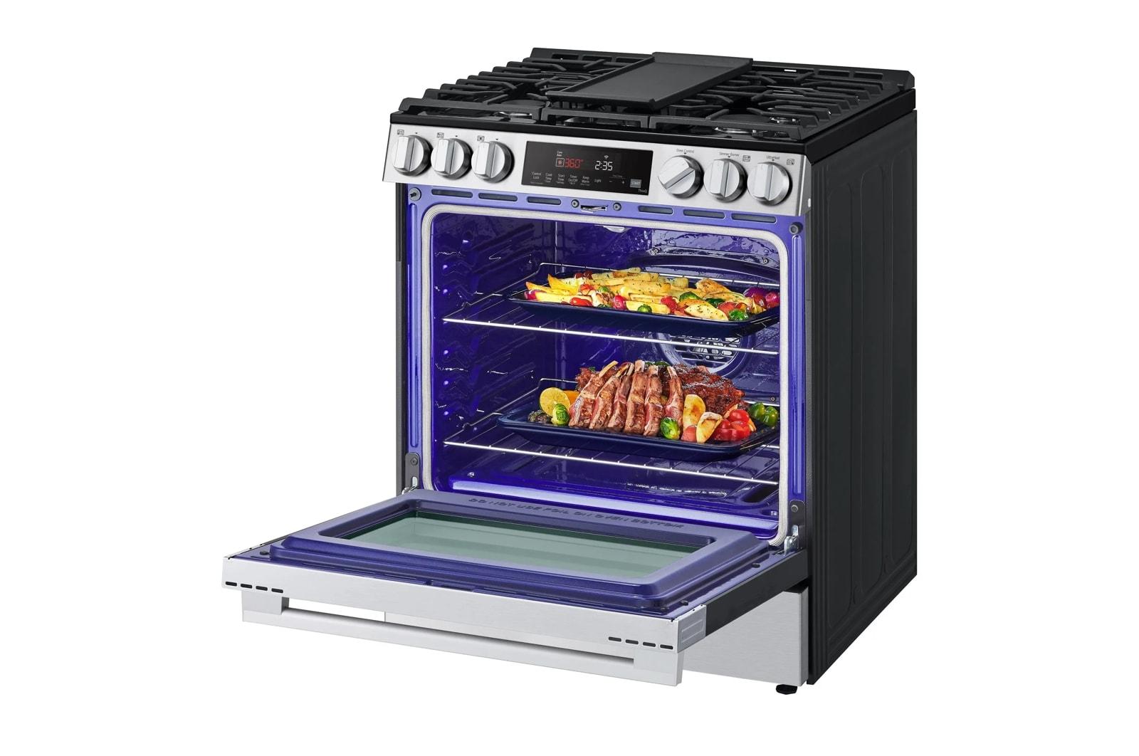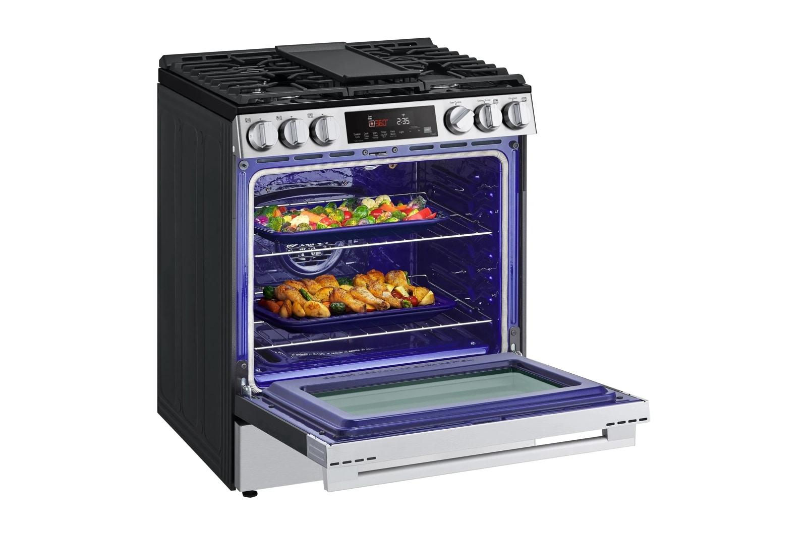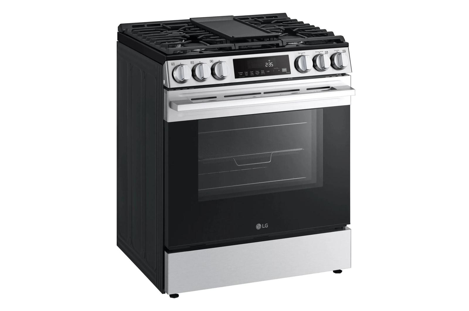 5.8 cu.ft. Smart Gas Single Oven Slide-in Range, Air Fry, Fan Convection, EasyClean(R), Self Clean, ThinQ(R), Printproof(R) Stainless Steel - New Handle