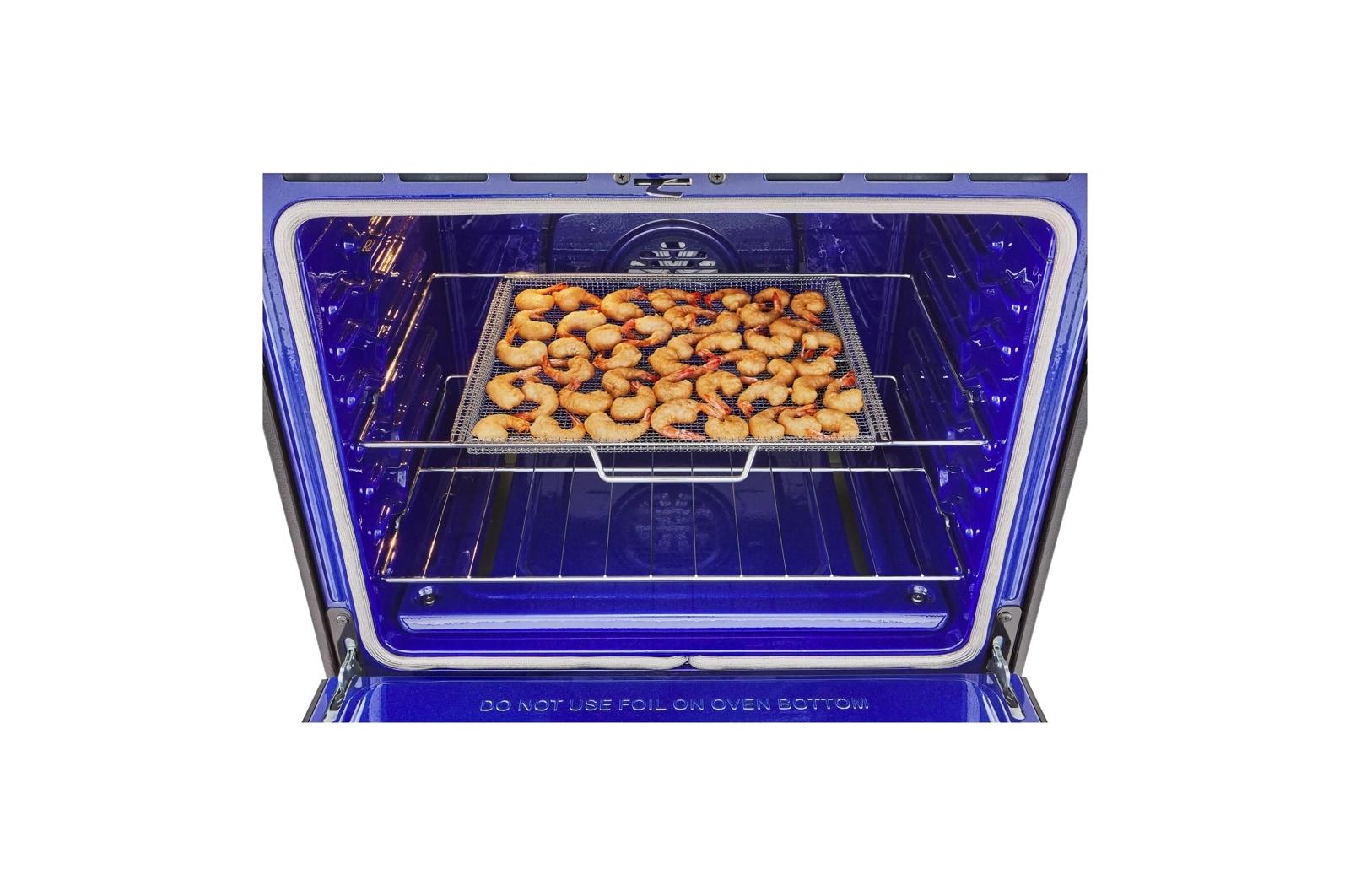 An outstanding oven should meet your needs and look beautiful doing it. Our blue, porcelain-enamel interior provides a distinctive look while offering easy visibility inside the oven.