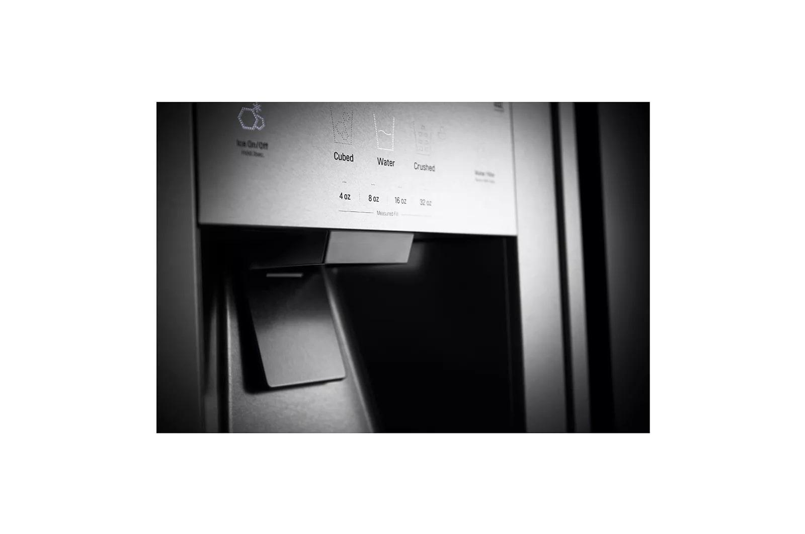 Freezer drawers glide out automatically, and gently, in response to opening the freezer doors, providing easy reach. Drawers seamlessly glide back in response to closing the freezer doors.