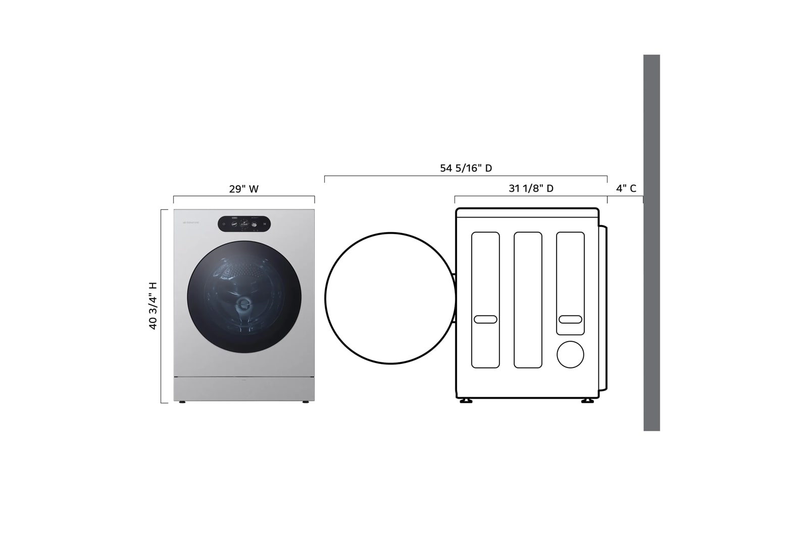 • With its sleek aesthetic and streamlined design, you may not expect capacity that goes beyond the boundaries of a traditional washer. The massive 5.8 cu. ft. tub accommodates king-size bedding, comforters, oversized towels or washable rugs with ease, all while helping to save time by reducing the number of loads each week. At 29" wide, it's only slightly larger than standard 27" models but still fits comfortably in most laundry spaces.
