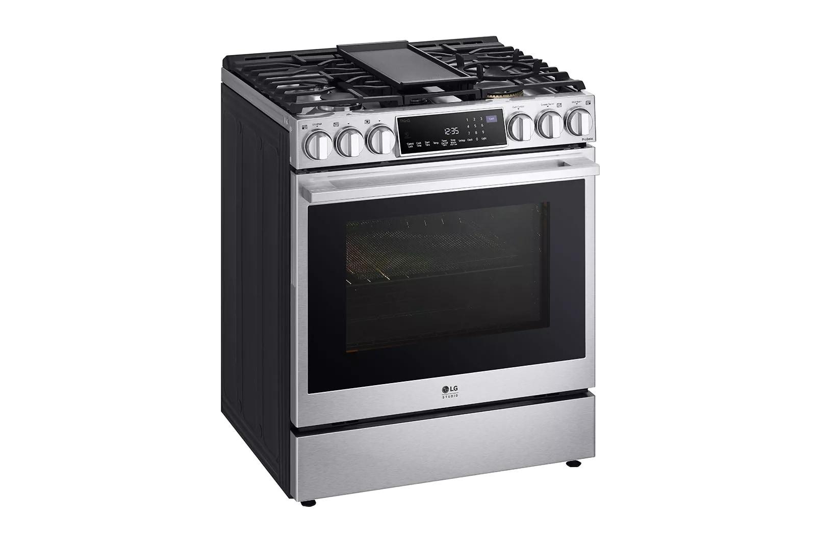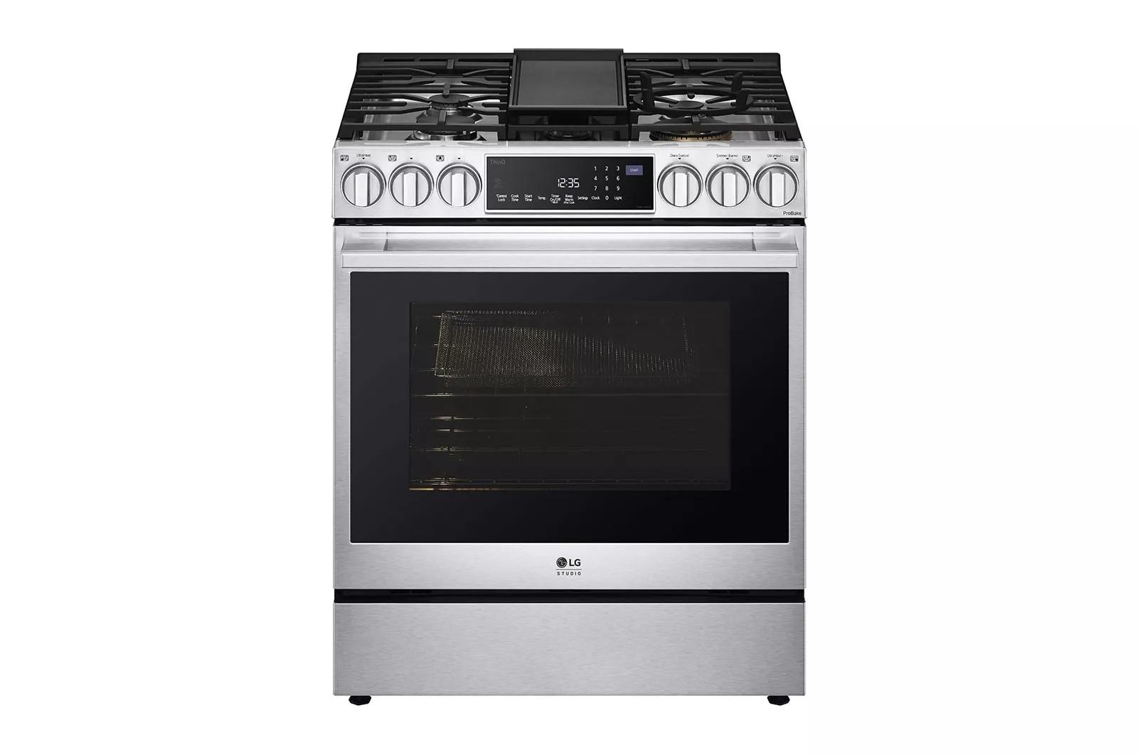 Get Free HOME Delivery! Extra 1 Year Warranty For FreeLG STUDIO 6.3 cu. ft. Smart Wi-Fi Dual Fuel Slide-in Range with ProBake Convection(R) and EasyClean(R)