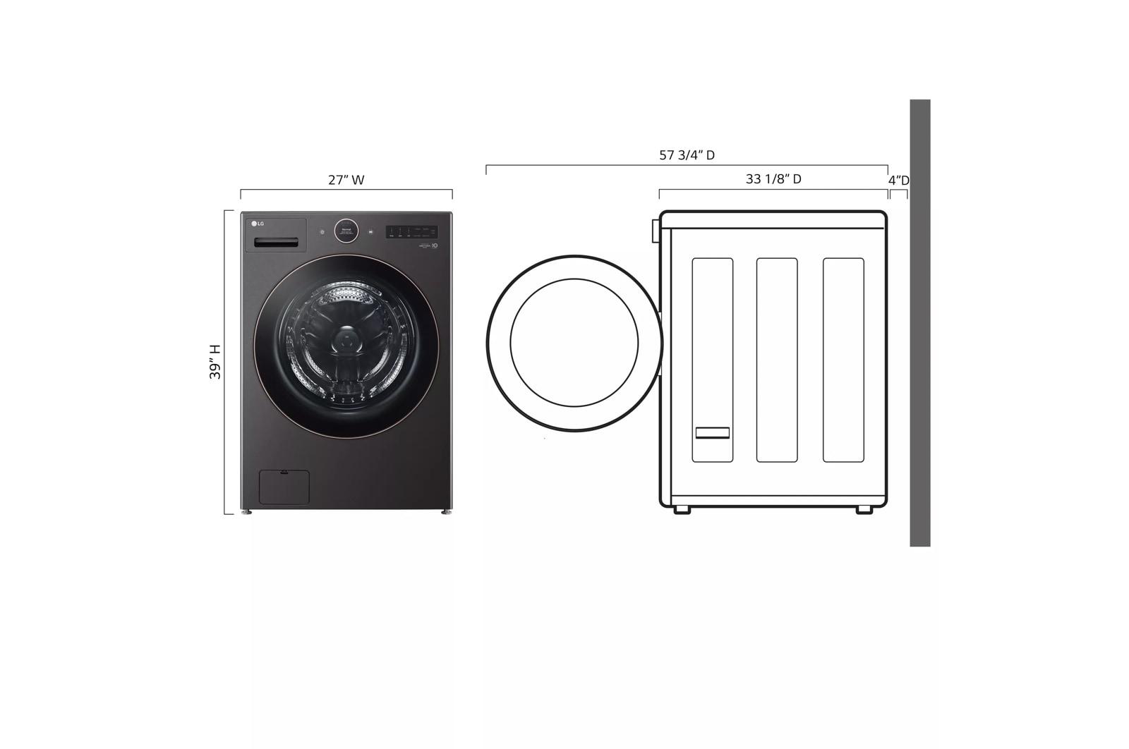 The modern flat front design, black steel finish and tinted, tempered glass doors bring a premium point of view to your laundry space.