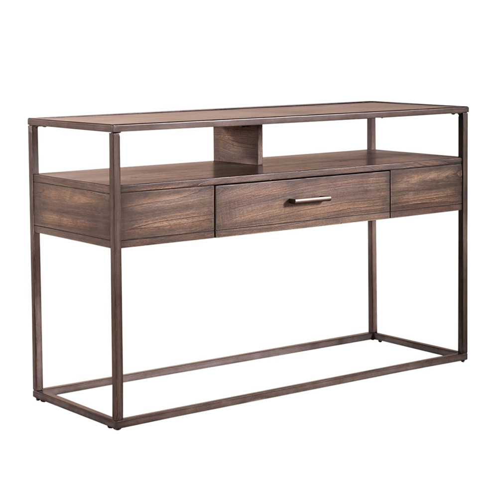 Crafted of rubberwood solids, metal tubes and mindy veneers, this piece features a tobacco finish, one full extension drawer, and an open shelf for additional storage. This modern sofa table would make a great addition to your contemporary space.