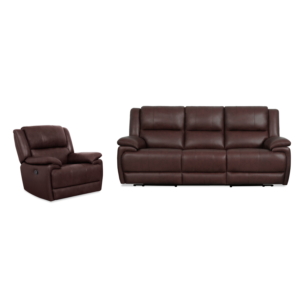 Aleena P2 Sofa And Recliner with Pecan leather cover