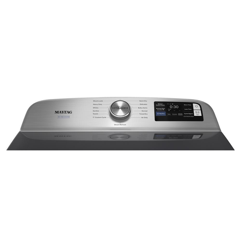 The Maytag Pet Pro dryer traps and removes loads of pet hair from clothes. The Pet Pro option lifts and captures pet hair from clothes and traps it in the lint trap. Extra Power boosts drying power to get thick fabrics drier the first time,* while Advanced Moisture Sensing helps evenly dry loads. Harness the power of steam to help prevent wrinkles and refresh clothes with a steam-enhanced dryer. In the never-ending fight against pet hair, Maytag dryer is ready to conquer pet hair like a pro. *Results may vary based on load size and type.