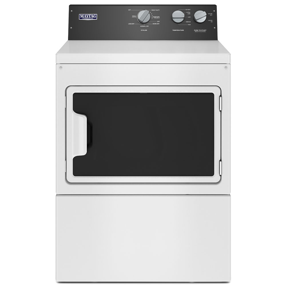 This Maytag Commercial Dryer is ready to deliver the powerful strength needed to tackle large loads with ease with its premium commercial dryer motor and drive system. As a moisture sensing dryer, use the IntelliDry sensor to track moisture and air temps for consistent results while the 7.4 cu. ft. capacity offers plenty of room for large loads.