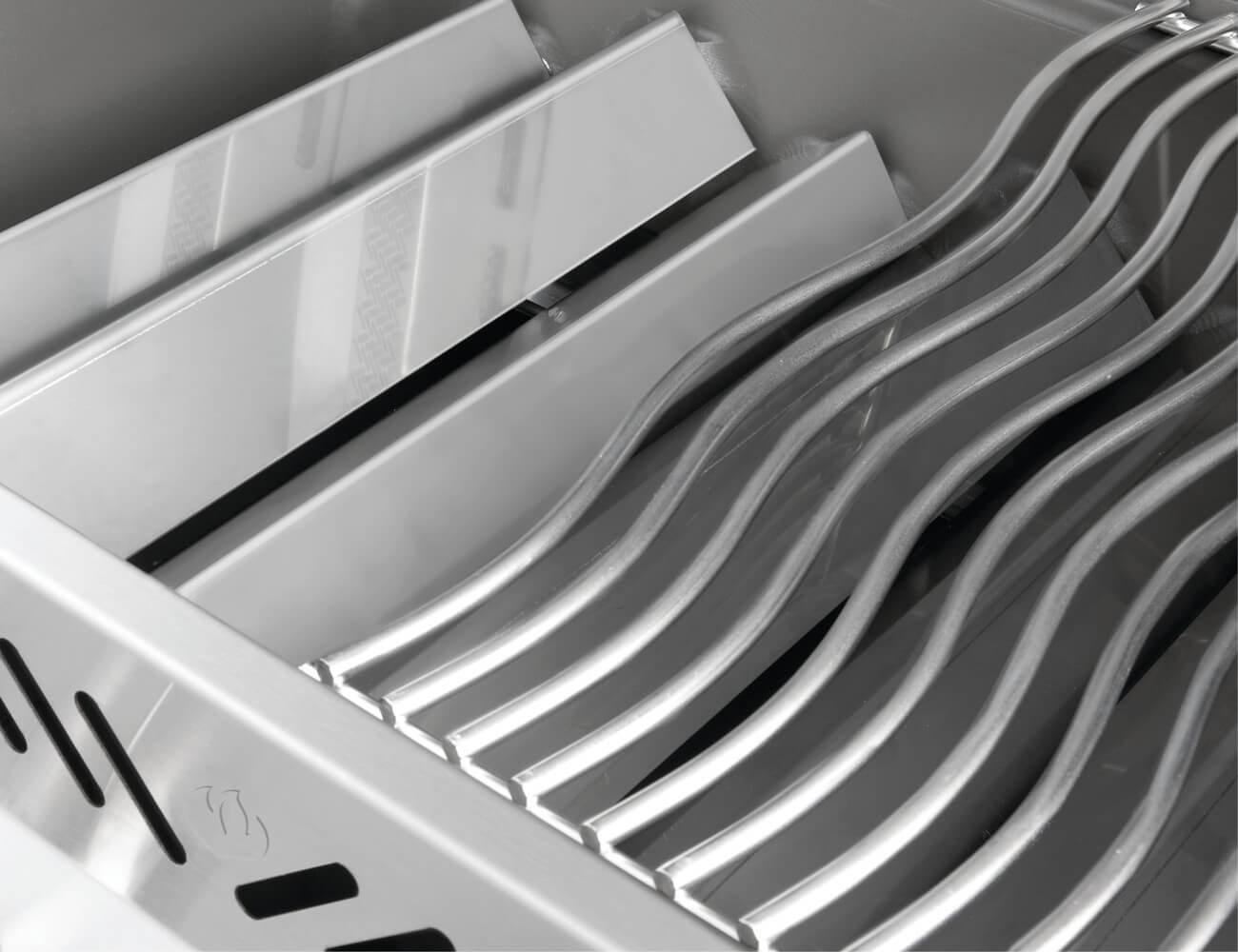 A gourmet outdoor kitchen deserves to have a big and beautiful grill. The Built-in Prestige PRO 665 Natural Gas Grill with Infrared Rear Burner features seven burners of grilling bliss. Durable stainless steel features chrome accents for luxury and durability. Grill after dark with LED Spectrum NIGHT LIGHT Control Knobs, with near limitless color possibilities. Additionally the SafetyGlow feature turns the lights red when a burner is in use. Know which burners are lit so you can get the perfect sear, or ideal indirect grilling temperature. The oven-like performance of this grill allows you to bake and roast with ease, sear over high heat, and the rear burner makes delicious rotisserie meals in no time. You'll know it's a Napoleon with the iconic WAVE cooking grids for those distinctive sear marks. The integrated smoker tube and dedicated burner can even turn this grill into a smoker, while interior lights let you grill well past dark. Perfect and professional, the PRO 665 Built-in Grill Head is the perfect grill for your outdoor kitchen.