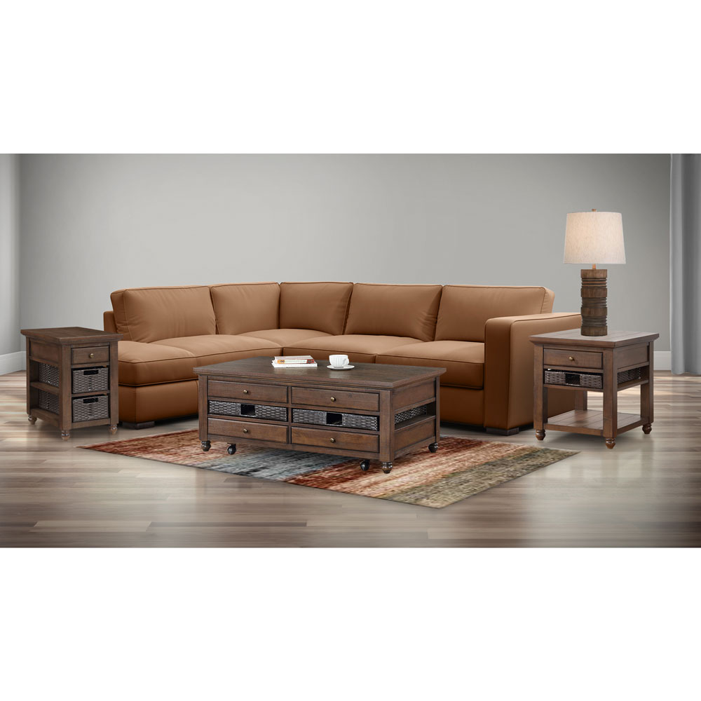 • Package Includes Left Arm Facing Chaise, Right Arm Facing Loveseat, Cocktail Table, End Table, Chairside End Table and Lamp