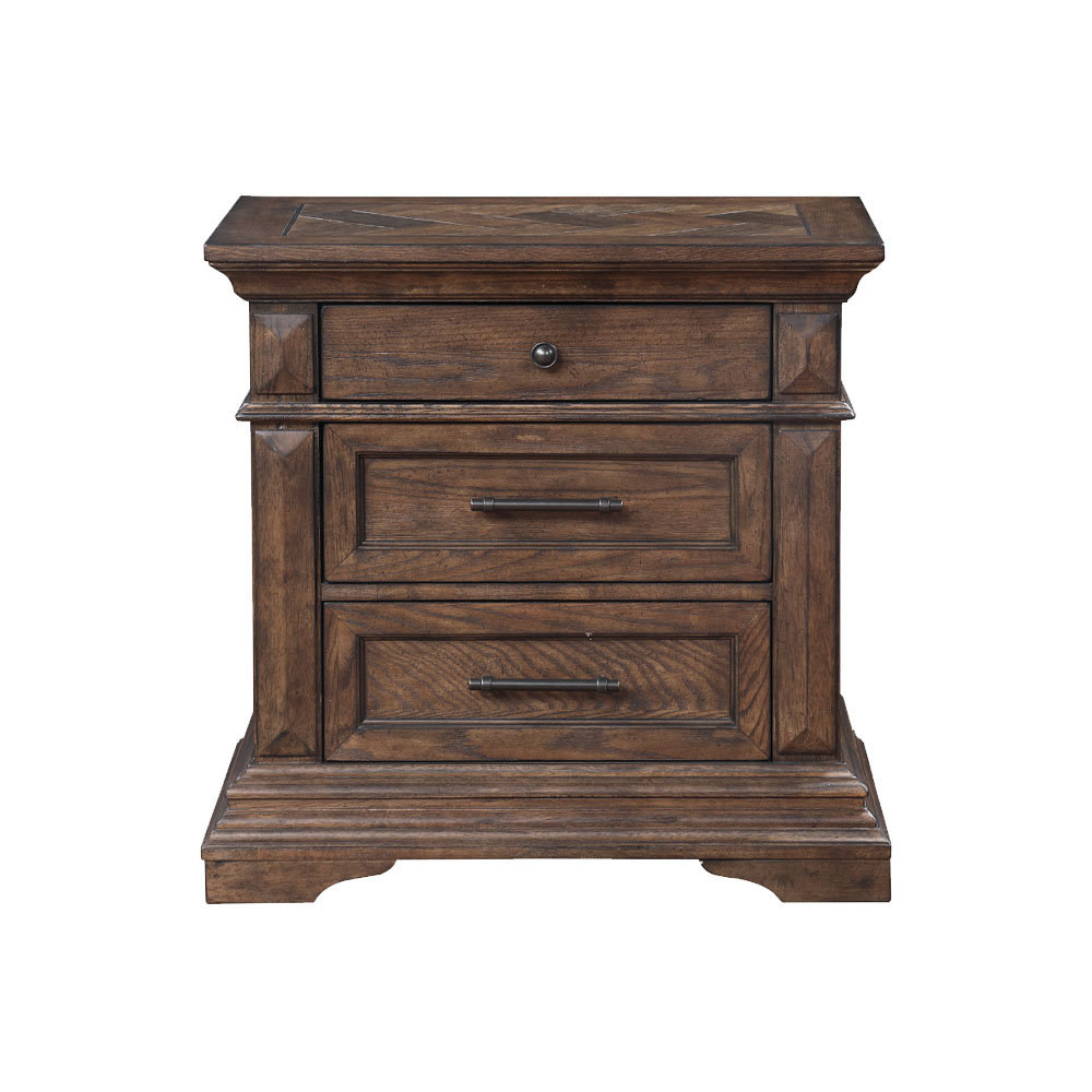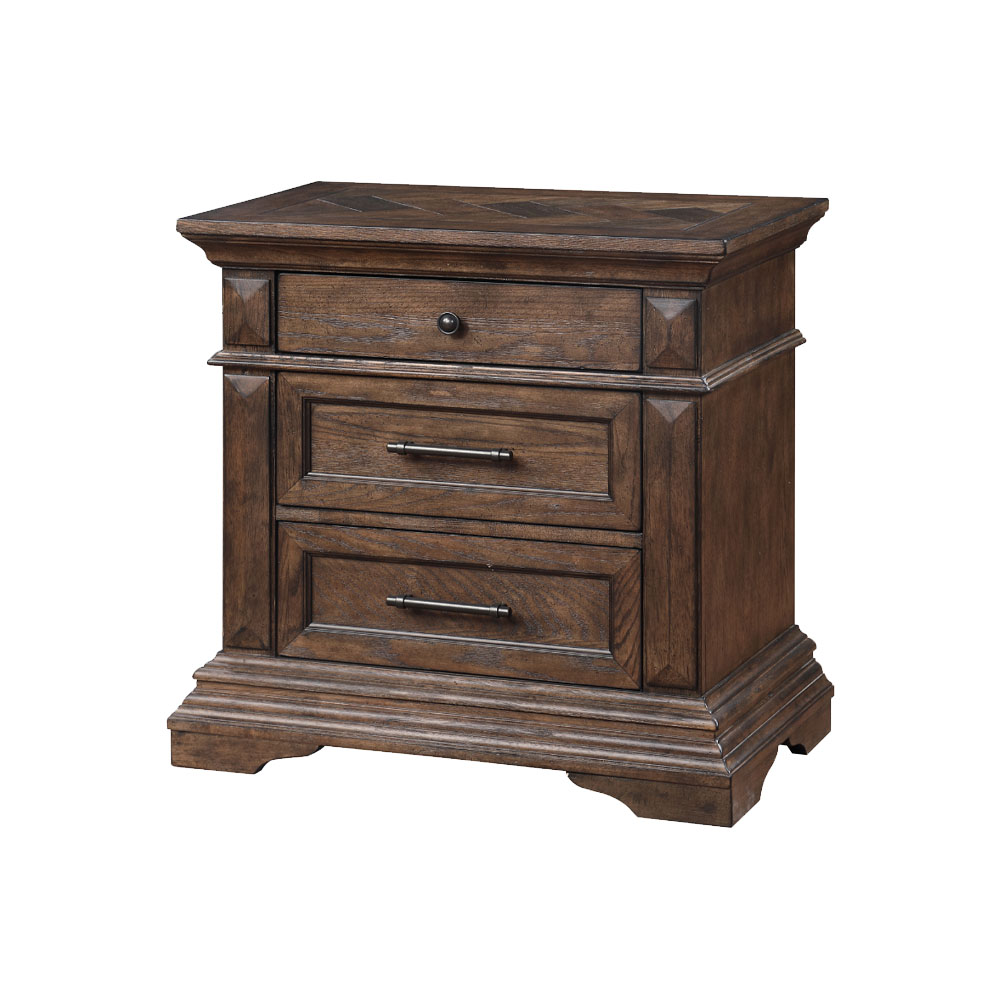 The Mar Vista 2-Drawer Nightstand in Walnut offers timeless beauty and practical storage. Constructed from solid Rubberwood and Oak veneers, this nightstand features a rich walnut finish that accentuates the wood's natural grain. Its traditional design includes crown moldings, carved feet, and signature herringbone wood inlays, giving it a classic appeal. The two spacious drawers, crafted with English dovetail joinery and full-extension glides, provide ample space for bedside essentials. Velvet-lined top drawers and cedar-lined bottom drawers offer luxurious storage options. This nightstand adds both beauty and functionality to any bedroom, enhancing your Mar Vista collection.