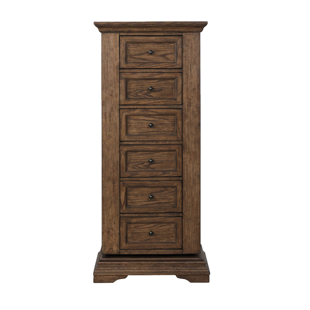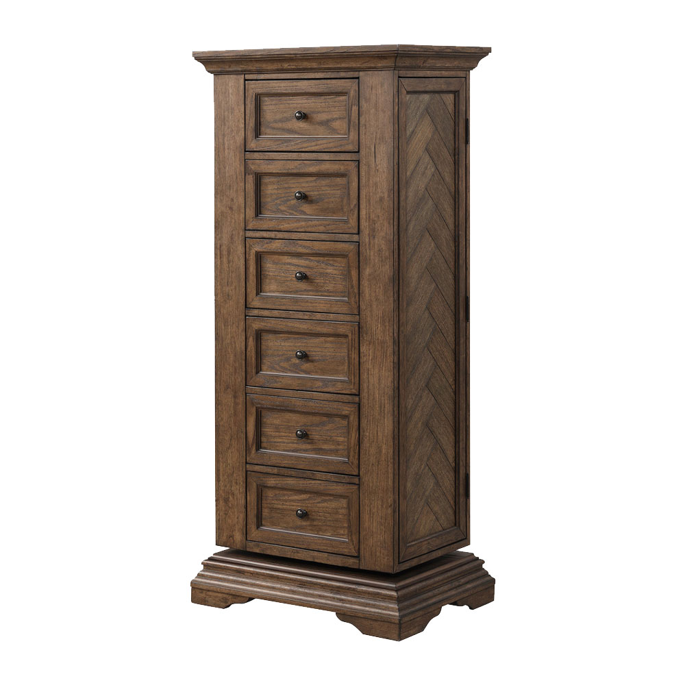 The Mar Vista Swivel Lingerie Chest in Walnut is a perfect blend of luxury and practicality. Crafted from solid Rubberwood and Oak veneers, it showcases a rich walnut finish that accentuates the natural beauty of the wood. The chest features a unique swivel design, revealing a beveled mirror and hidden compartments for jewelry and accessories. Traditional design elements such as crown moldings, carved feet, and herringbone wood inlays add an elegant touch. Velvet-lined drawers ensure delicate items are stored with care, while the spacious storage offers both style and functionality. A perfect piece for those who appreciate both beauty and convenience.