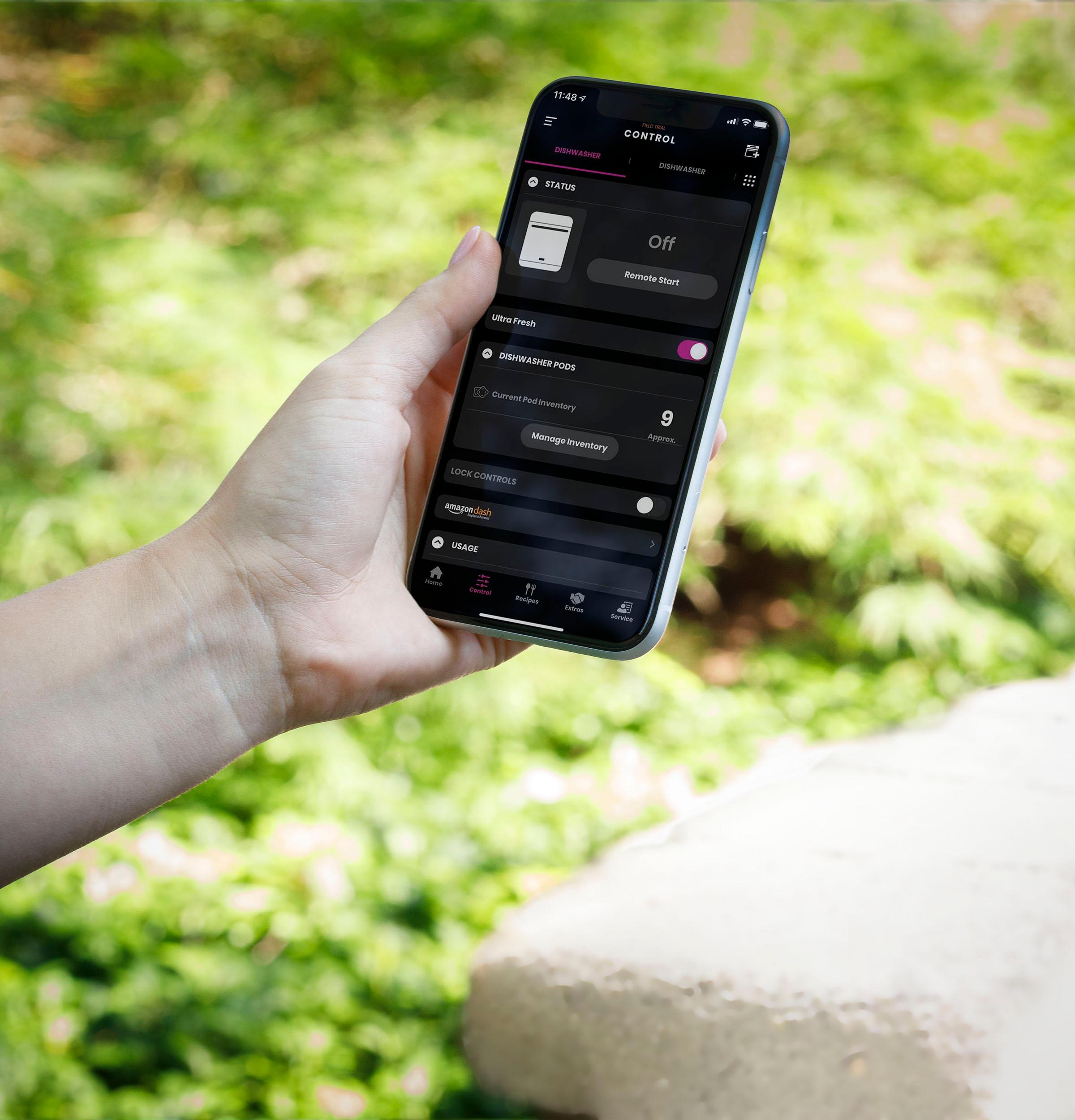 Get the most out of your smart dishwasher with built-in WiFi powered by SmartHQ. Monitor performance, check status and automatically reorder detergent using your mobile device