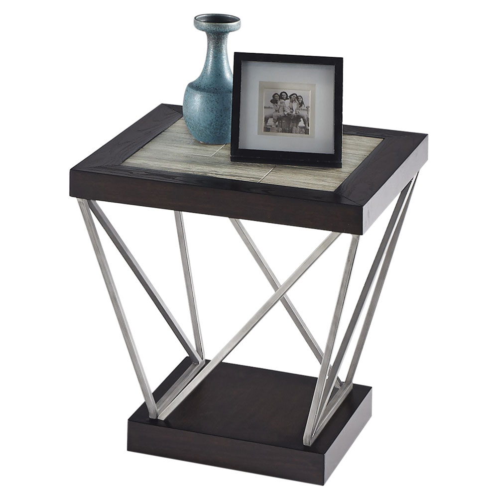 Trolley Collection End Table with Woodtone,metal,tile finish