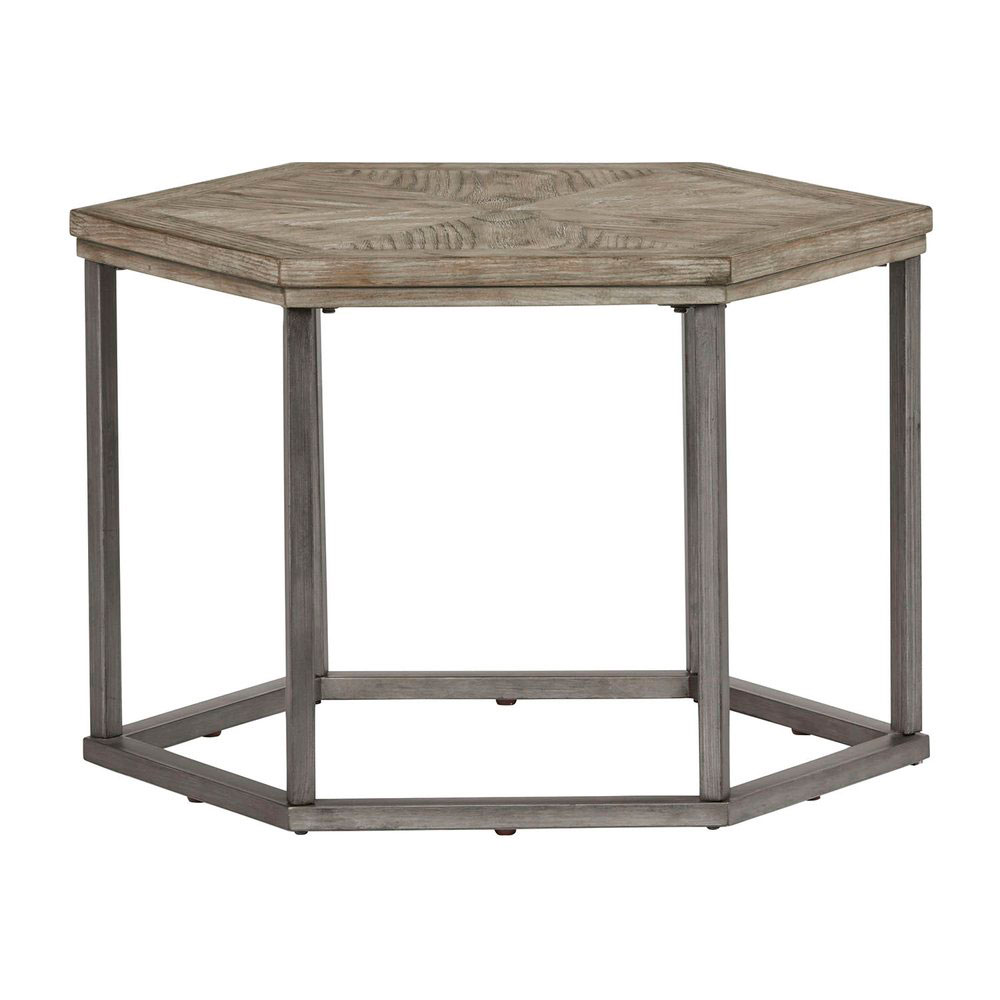 This hexagon bunching cocktail table is constructed of close grain ash veneers in a natural finish. Combined with a metal frame in a dark gray gunmetal color, giving this piece an up to date trendy style.