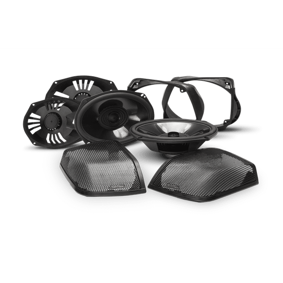 Retrofit kit allows addition of rear speakers on your existing factory bag lids and plug directly into a Rockford Fosgate front audio kit that utilizes the Power T400X4ad, TM400X4ad, or M5-800X4 4-channel amplifiers. Eliminates need to paint and color match. See Specifications tab for compatible motorcycles. You will need to flash your factory radio to use this kit . Ready to flash? Here's a list of dealers that can flash your radio . Not designed for factory amplifiers. Refer to our COMPATIBILITY chart to verify fitment before purchasing.