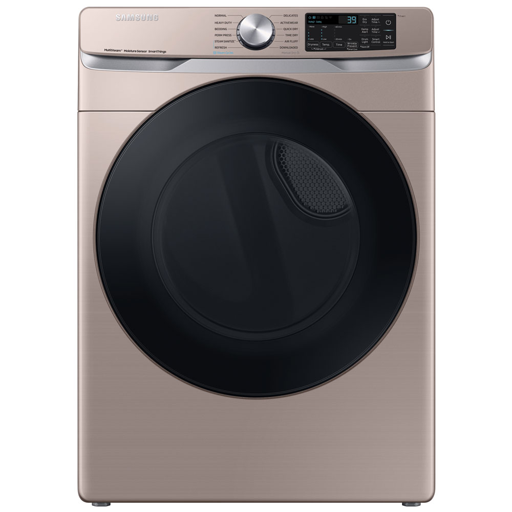 Samsung's new 7.5 cu. ft. dryer allows you to remotely start or stop your cycle, schedule laundry on your time, receive end of cycle alerts, and more, right from your smartphone.* Steam Sanitize+ eliminates 99.9% of germs and bacteria,** while Multi-Steam technology relaxes and smooths away wrinkles from everyday wear.