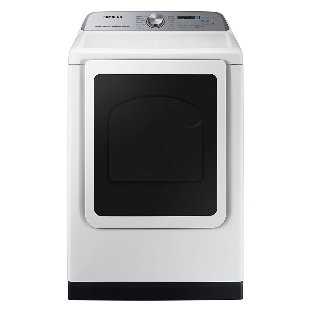 Samsung's 7.4 cu. ft. smart front load gas dryer in white has Steam Sanitize+ to sanitize clothing and reduce wrinkles and odors.