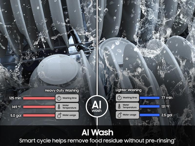 • Remove stubborn food residue effectively thanks to AI Wash's high-resolution sensor and machine learning algorithm that automatically adjusts washing and rinsing cycles.