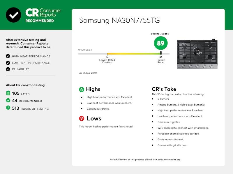 30" Gas Cooktop with 22K BTU True Dual Power Burner