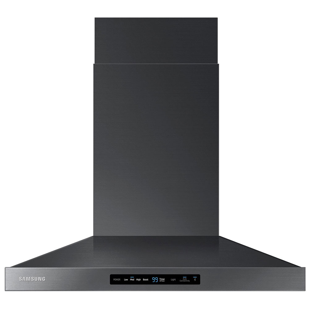 30" Bespoke Smart Wall Mount Hood with LCD Display in Clean Deep Charcoal