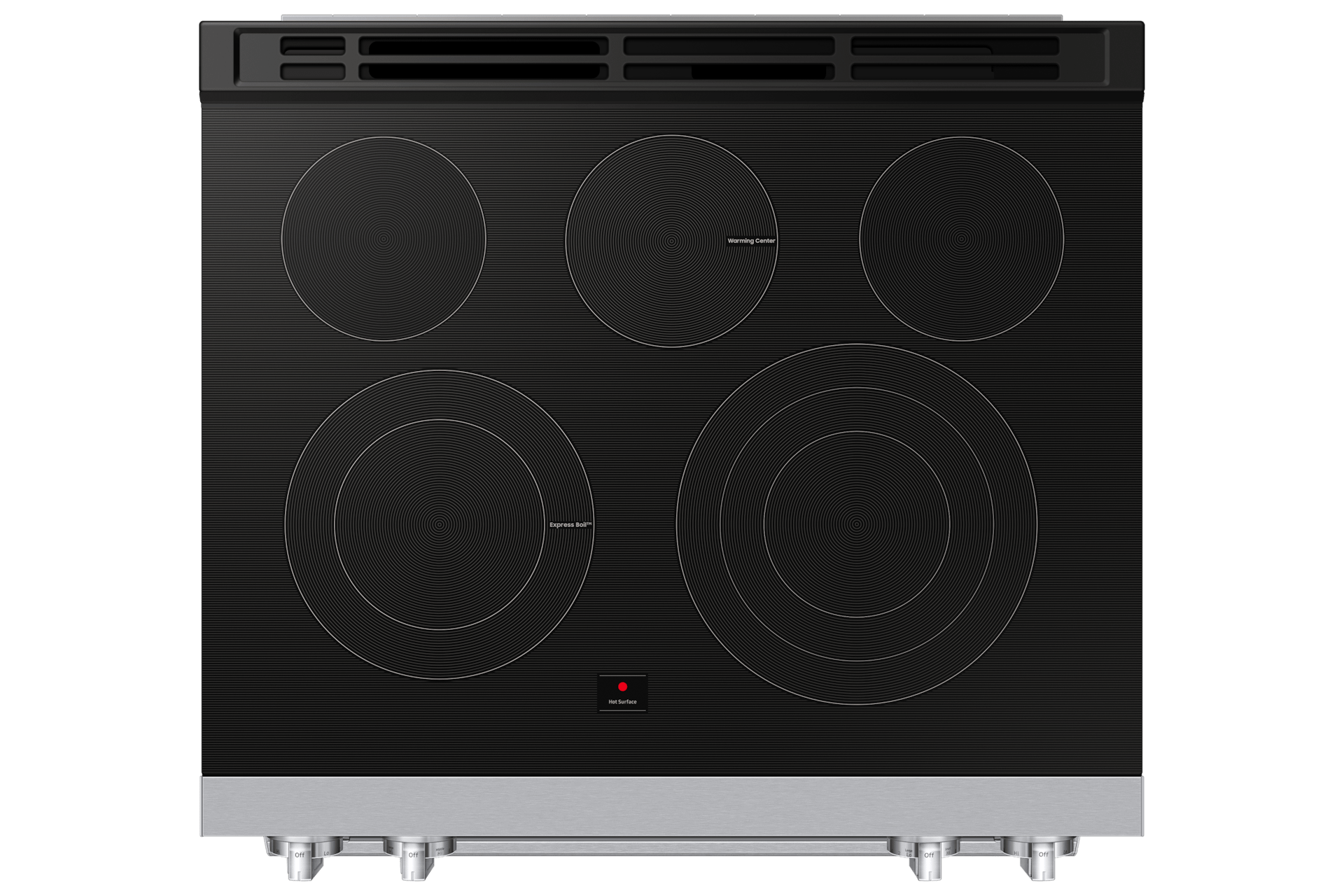 • Cook fast and evenly with a powerful 3.6kW electric cooktop. With flexibility to boil fast, sear meat, or saut(eback), its five burners include one tri-ring and one dual-ring element to accommodate various pan sizes.