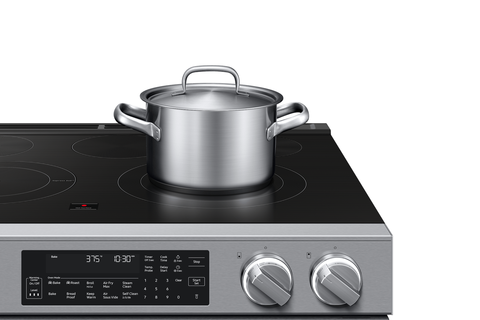 Cook fast and evenly with a powerful 3.6kW electric cooktop. With flexibility to boil fast, sear meat, or saut(eback), its five burners include one tri-ring and one dual-ring element to accommodate various pan sizes.