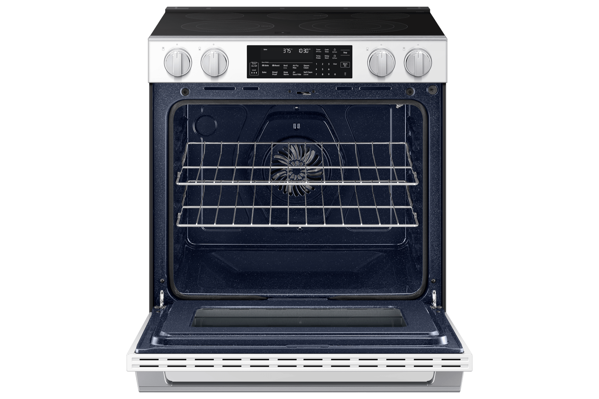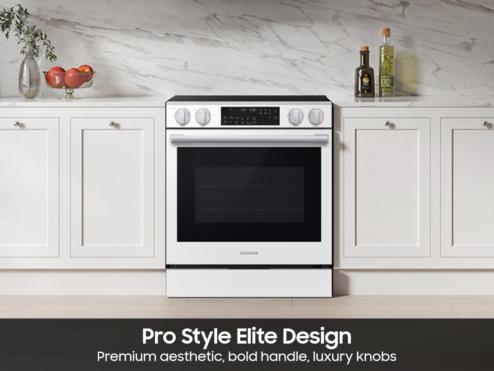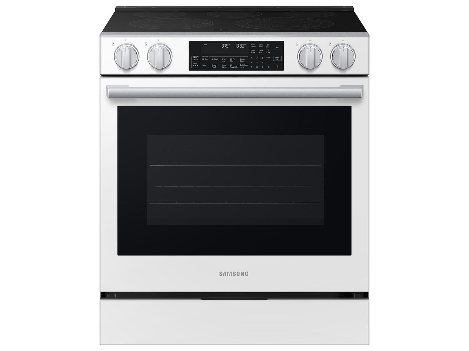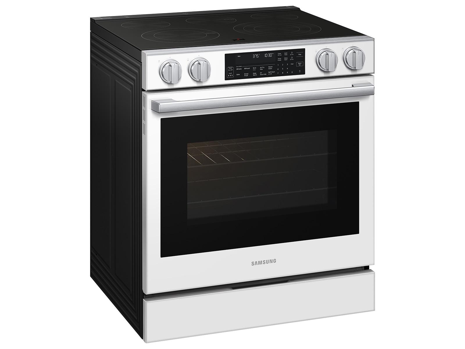 Bespoke 6.3 cu. ft. Smart Slide-In Electric Range with Smart Oven Camera & Illuminated Precision Knobs in White Glass