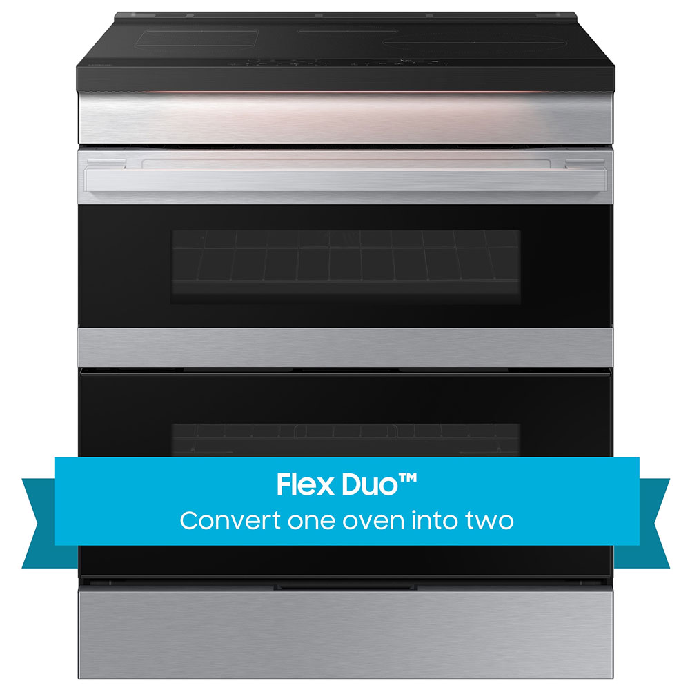 The Flex Duo removable divider and dual temperature controls let you convert one oven into two so you can cook multiple meals at once at different temperatures or settings.